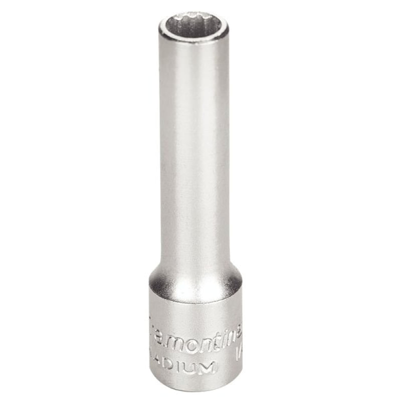 Soquete Estriado Aço Cromo Vanádio 9/32 polegada - Encaixe 1/4 polegada Tramontina PRO Tramontina - Os soquetes da Tramontina PRO são produzidos com sistema Hyper Drive que melhora o acoplamento do produto ao parafuso ou porca, reduzindo as tensões geradas no aperto e prolongando a sua vida útil. Escolha o tamanho e perfil ideal para a sua necessidade e mãos à obra. Características Gerais do Produto: Garantia: • Garantia contra vícios ou defeitos de fabricação.