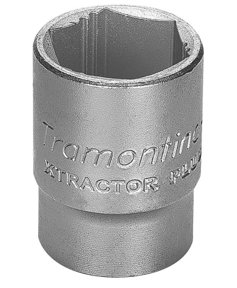 Soquete Xtractor Plus Aço Cromo Vanádio 30mm - Encaixe 1/2" Tramontina PRO Tramontina - O soquete XTractor Plus da Tramontina PRO possui sistemas de estrias para facilitar a remoção de parafusos gastos (em até 80%) ou engripados. Além disso, pode ser usado como um soquete tradicional nas colocações e retiradas de porcas e parafusos sextavados. Maior resistência e segurança em suas mãos. Orientações Soquete forjado em aço cromo vanádio e temperado. Acabamento cromado. DIN 3124. Os soquetes são submetidos a testes rigorosos de torque e de dureza para atender a norma DIN 1711-1.Afrouxar e apertar parafusos e porcas sextavados.As ferramentas são produzidas e testadas conforme normas específicas. Observações Use óculos, luvas e outros equipamentos de proteção individual (EPIs) de acordo com a tarefa a ser executada. Selecione o tamanho do soquete conforme a bitola do parafuso ou porca. Para operações com parafusadeiras pneumáticas ou elétricas, use soquetes de impacto. Inspecione os soquetes antes de sua utilização. Soquetes que apresentam trincas ou desgaste excessivo devem ser substituídos. Armazene em local limpo e seco. Características Gerais EAN13 7891114083811 DUN14 17891114083818 NCM 8204.20.00 0,2200 kg. 0,2200 kg. Metragem 0,000225 m³. 100x 50x 45 mm. 45x 40x 40 mm. Dimensão Extra A 34,0 mm. Dimensão Extra B 45,0 mm. Dimensão Extra C 40,0 mm. Dimensão Extra D 30,0 mm. Características Gerais do Produto: Garantia: • 1 Ano