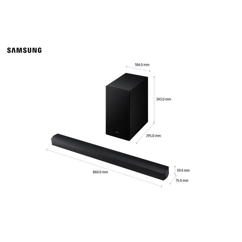 Soundbar Samsung HW-B450F – uma experiência de som nítida e surpreendente! Eleve o som da sua TV com a Soundbar Samsung HW-B650F/ZD. Com potência total de 370W e sistema de 3.1 canais, capaz de entregar uma experiência sonora envolvente e detalhada para filmes, séries, jogos e músicas.SubwooferCom subwoofer sem fio e tecnologia Bass Boost, você sente cada batida com graves intensos e definidos. Já o Dolby Audio e o DTS Virtual:X criam um som tridimensional e cinematográfico que preenche todo o ambiente.Som AdaptávelA função Q-Symphony sincroniza a TV e a soundbar para trabalharem em perfeita harmonia, proporcionando um som integrado e equilibrado. Além disso, o Som Adaptável ajusta automaticamente o áudio conforme o conteúdo, enquanto o Modo Jogo intensifica os efeitos sonoros para uma experiência imersiva. BluetoothCom Bluetooth 4.2 e reprodução via USB, a conectividade é prática e versátil. A soundbar também conta com entrada e saída HDMI (ARC) e entrada óptica, garantindo compatibilidade com diversos dispositivos.O design moderno em Preto combina com qualquer ambiente, e o controle remoto incluso proporciona total conveniência para ajustar o som conforme sua preferência. Potência de 370W com 3.1 canais Subwoofer sem fio com graves potentes Dolby Audio e DTS Virtual:X com som 3D Q-Symphony: som em sincronia com a TV Bluetooth 4.2 e reprodução via USB Modos Som Adaptável, Jogo e Bass Boost Soundbar Samsung HW-B650F/ZD: som de cinema, conectividade total e design elegante para sua casa.Descubra mais produtos com a tecnologia Samsung!