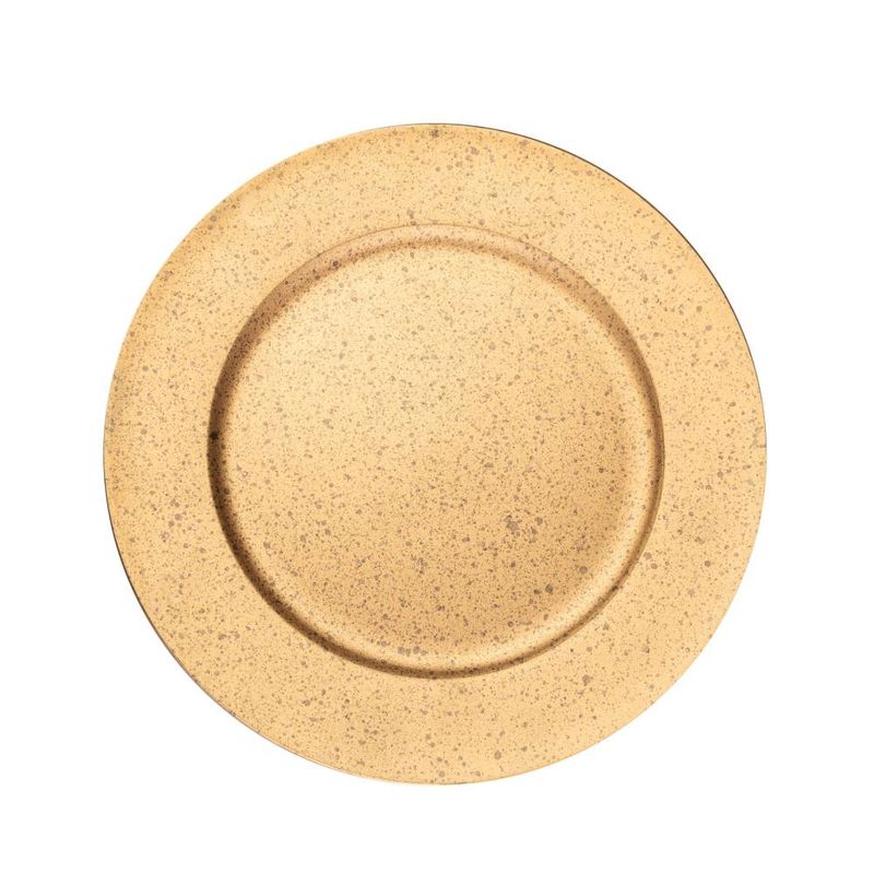 Sousplat Wolff de Plástico Granilite Dourado 33cmO Sousplat de Plástico Granilite Dourado da Wolff é uma adição elegante e sofisticada para a sua mesa. Com um diâmetro de 33cm, este sousplat apresenta um acabamento granilite em tom dourado, adicionando um toque de luxo e glamour à sua configuração.Design Exclusivo com Acabamento GraniliteO acabamento granilite confere ao sousplat uma aparência única e refinada, criando um visual moderno e elegante para qualquer ocasião. Seu design exclusivo é ideal para impressionar seus convidados em jantares e eventos especiais.Material Durável e de Alta QualidadeFabricado em plástico resistente, este sousplat é durável e fácil de limpar, tornando-o perfeito para uso diário ou para ocasiões especiais. O acabamento dourado adiciona um brilho sofisticado à sua mesa.Dimensões IdeaisCom um diâmetro de 33cm, oferece uma base espaçosa para pratos e talheres, protegendo sua mesa contra arranhões e derramamentos durante as refeições.Versatilidade de UsoPerfeito para uma variedade de eventos, desde jantares formais até encontros casuais, este sousplat é uma maneira fácil de elevar o visual da sua mesa e impressionar seus convidados com estilo.Fácil de ArmazenarSeu design leve e fino permite que seja facilmente armazenado em armários ou gavetas quando não estiver em uso, otimizando o espaço na sua cozinha ou despensa.Adicione um toque de elegância e sofisticação à sua mesa com o Sousplat de Plástico Granilite Dourado da Wolff.Wolff. A excelência em receber, servir e decorar!Contém: 1 SousplatLava Louça: NãoMicroondas: NãoForno: NãoFogão: NãoFreezer: NãoMedidas Produto: Altura 2,00cm x Largura 33,00cm x Comprimento 33,00cmPeso: 0,32KgCor: DouradoMaterial: PlásticoLavar com detergente neutro, esponja macia e secar imediatamente.