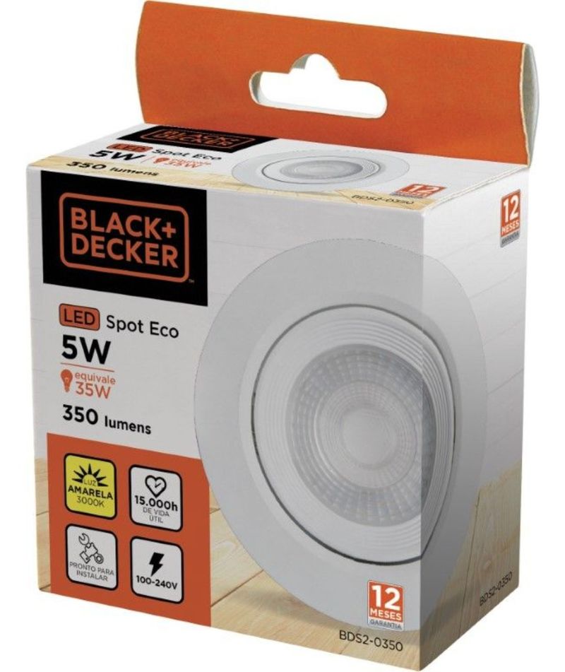 Spot Led Eco 5W 6500K Redondo Black+DeckerTransforme seu ambiente com o Spot LED Eco 5W 6500K da renomada marca Black+Decker. Este produto é ideal para quem busca modernidade e eficiência em iluminação. Com um design redondo e elegante, ele se adapta perfeitamente a diversos tipos de decoração, proporcionando uma luz branca de 6500K que traz aconchego e sutileza ao ambiente. Seja para quartos, salas, hall de entrada ou qualquer outro espaço, este spot é a escolha certa para quem deseja uma iluminação de qualidade.Produzido com materiais de alta qualidade, o Spot LED da Black+Decker é fácil de instalar, já que seu corpo e lâmpada são acoplados, prontos para embutir. O núcleo do spot permite o direcionamento da luz, oferecendo flexibilidade na iluminação e destacando pontos específicos do ambiente. Além disso, a eficiência energética do LED contribui para a economia de energia e sustentabilidade, substituindo lâmpadas incandescentes de 35W com apenas 5W de potência.ESPECIFICAÇÕES TÉCNICAS:- Marca: Black+Decker- Modelo: SPOT- Voltagem: 100 - 240V- Potência: 5 W- Temperatura de cor: 6500 K- Cor da luz: Branco- Lumens: 350 lm- Frequência: 50/60Hz- Ângulo de Facho: 38°- IRC (Índice de Reprodução de Cor): ≥70- Durabilidade da Lâmpada: 15.000 horas- Índice de Proteção: IP20- Tipo de LED: SMD- Formato da luminária: Redondo- Lugares de montagem: Teto- Substitui uma Lâmpada Incandescente de: 35W- Dimerizável: Não- Possui Reator Integrado: NãoFUNÇÕES E CARACTERÍSTICAS:- Fácil instalação em forros de madeira, gesso ou drywall- Direcionamento ajustável da luz- Design moderno e elegante- Eficiência energéticaINSTRUÇÕES DE USO:1. Desligue a energia elétrica antes de iniciar a instalação.2. Faça o corte no forro de acordo com o tamanho do spot.3. Conecte os fios do spot à rede elétrica.4. Encaixe o spot no corte do forro.5. Ligue a energia elétrica e teste a iluminação.ITENS INCLUSOS:- 01 unidade do Spot LED Eco 5W 6500K