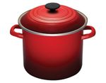 - Destaques: • A Stockpot da Le Creuset possui laterais retas e altas, com grande capacidade, ideal para preparar sopas, guisados, molhos e massas. Disponível em uma variedade de tamanhos e cores, o Aço Carbono Esmaltado fornece aquecimento rápido e limita a evaporação, realçando os sabores dos alimentos. Leve e durável, seu material também é um ótimo retentor de calor, mantendo as preparações quentes por mais tempo. Seu interior esmaltado não absorve odores e sabores de outras preparações, além de ser fácil de limpar, não reativo a alimentos ácidos e resistente a manchas, torando-o ideal para o uso diário. - Detalhes: • Fabricada em aço carbono leve que possibilita a água ferver rapidamente; • Excelente retenção de calor para manter alimentos e líquidos quentes; • O esmalte de porcelana é não reativo, não poroso e resistente a manchas, ferrugem, arranhões e absorção de sabor; • O aro de aço inoxidável em torno da borda superior evita lascas e rachaduras; • O pegador é resistente ao calor e permanece frio ao toque, deixando o manuseio seguro; • Compatível com todos os cooktops; • Lavar com água quente e sabão; • Não é indicado para uso no forno ou micro-ondas, ou fontes de calor não regulamentadas como: churrasqueiras, grills, lareira, fogão a lenha ou forno de pizza - Especificações: • Tamanho: 26 cm • Porções: 6-8 • Material: Aço Esmaltado • Capacidade: 11 L • Fonte de Calor: Vitrocerâmico, Indução, Elétrico, Gás, Radiante • Comprimento: 35 cm • Largura: 29 cm • Altura: 23 cm • Modo de Lavagem: Lavagem a Mão • País de Origem: Tailândia • Garantia: 5 anos