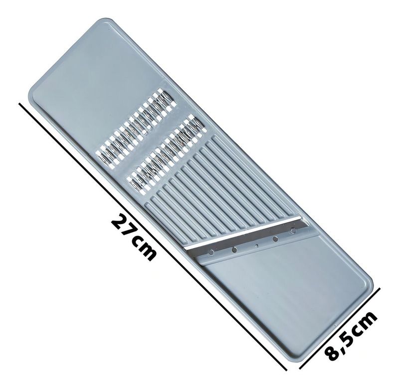 Super Fatiador Cortador De Legumes E Frutas - INOX -Lig Brin - O Super Fatiador De Legumes 27 Cm - 30991 é um item indispensável para a sua cozinha. Com ele, você pode cortar e fatiar legumes de maneira rápida e prática. Feito de plástico resistente, o Super Fatiador tem dimensões compactas, o que facilita o seu armazenamento. Com uma embalagem de 31,5x9x3cm, você pode guardá-lo de forma segura e ocupando pouco espaço. O Super Fatiador oferece duas opções: fatiar ou ralar. Ambas as funções são fáceis de executar. Basta posicionar o instrumento sobre um prato e passar o alimento sobre a superfÃcie de metal escolhida. Além disso, o Super Fatiador tem dimensões de 26,5cm, garantindo um corte preciso e uniforme. Seu funcionamento é simples e prático, tornando-o uma excelente opção para o dia-a-dia da sua cozinha. Não perca mais tempo na hora de preparar seus legumes. Com o Super Fatiador De Legumes 27 Cm - 30991, você terá uma ferramenta eficiente e versátil à sua disposição. Material da lâmina: Aço inoxidável Material do corpo: Plástico Marca: Lig Brin Cor: Cinza Inclui recipiente: Não à apto para lava-louças: Sim Comprimento: 31 cm Modelo: Super Fatiador De Legumes Quantidade de peças: 2 Largura: 9 cm Com lâminas intercambiáveis: Não Características Gerais do Produto: Garantia: • 3 Meses