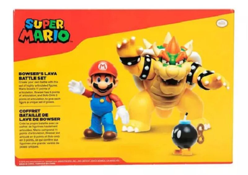 Super Mario Batalha De Lava Do Bowser e Bob-Omb - Sunny Crie sua própria batalha com este conjunto de bonecos altamente articulados de Super Mario. Mario possui 11 pontos de articulação, Bowser possui 9 pontos de articulação e Bob-Omb tem 3 pontos de articulação, para dar a cada figura um conjunto único de poses. Comece já a sua coleção! Idade acima de 3 anos Contem 3 figuras Tamanho da embalagem 26 x 19x 17 cm Fabricante Jakks/Sunny
