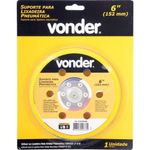 Suporte Base Para Lixadeira Roto Orbital Pneum Lp610 VonderSuporte Base para Lixadeira Roto Orbital Pneumática VONDER LP 610Transforme sua experiência de lixamento com o Suporte Base para Lixadeira Roto Orbital Pneumática VONDER LP 610. Este acessório é essencial para quem busca eficiência e praticidade em seus projetos. Compatível com a lixadeira VONDER LP 610, ele também pode ser utilizado em modelos elétricos ou pneumáticos, desde que a rosca de fixação da máquina seja 5/16 UNF 24 fios. Ideal para trabalhos a seco, este suporte não deve ser utilizado com solventes, garantindo a segurança e a durabilidade do produto. O sistema de fixação fixa fácil é um dos grandes destaques deste suporte, permitindo a troca rápida e fácil do disco de lixa. Isso não só economiza tempo, mas também aumenta a eficiência do seu trabalho, tornando-o mais produtivo. Com 6 furos, o suporte oferece estabilidade e precisão durante o uso, características essenciais para um acabamento perfeito.ESPECIFICAÇÕES TÉCNICAS:- Marca: Vonder- Modelo: 7893946428730- Diâmetro: 6 (152 mm)- Rotação máxima: 10000 rpm- Rosca do eixo: 5/16 UNF - 24 fios- Código universal de produto: 7893946428730FUNÇÕES E CARACTERÍSTICAS:- Sistema de fixação fixa fácil- Compatível com lixadeiras elétricas e pneumáticas- Indicado para trabalhos a secoINSTRUÇÕES DE USO:1. Verifique se a rosca de fixação da sua lixadeira é compatível (5/16 UNF 24 fios).2. Fixe o suporte na lixadeira, garantindo que esteja bem ajustado.3. Coloque o disco de lixa com pluma no suporte.4. Utilize a lixadeira em movimentos suaves para um acabamento uniforme.5. Após o uso, limpe o suporte para prolongar sua vida útil. Produto: Suporte