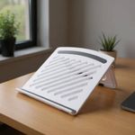 Suporte Branco Para Laptop Notebook Inclinação Ajustável ===================================== Um acessório inteligente e funcional, projetado para oferecer mais conforto, ergonomia e segurança no uso diário de notebooks. Ideal para escritórios, home offices ou estudos, ele eleva seu laptop à altura ideal dos olhos, melhorando a postura, reduzindo a tensão no pescoço e ombros e proporcionando mais conforto ao digitar. Sua estrutura vazada facilita a circulação de ar, auxiliando na refrigeração do equipamento e ajudando a evitar superaquecimento durante longos períodos de uso. Possui fita protetora nas áreas de apoio, que evita riscos e danos ao notebook, além de pés antiderrapantes, que proporcionam estabilidade e segurança em qualquer superfície. ===================================== Contém: 01 Suporte Especificações: - Material: Plástico - Medida: 24,5cm x 24,5cm x 02cm - Inclinação Ajustável: 0° até 130° - Peso: 318 gramas - Cor: Branco ===================================== Devido à diferença entre monitores e iluminação diferentes, pode haver variação na tonalidade apresentada no anúncio. Medidas muito aproximadas.