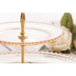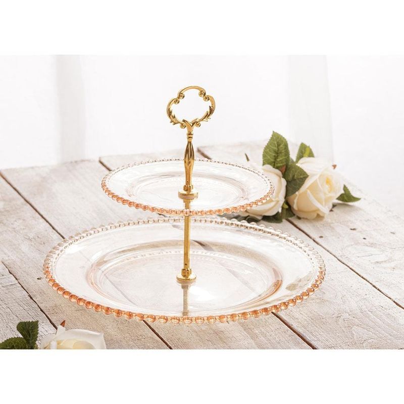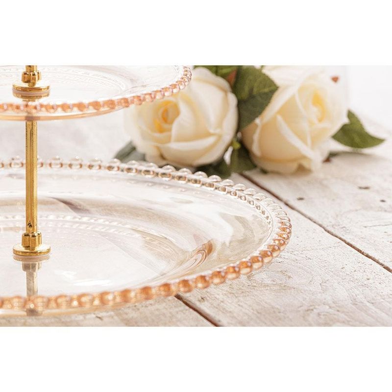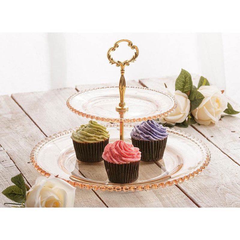 Se você ama montar uma mesa completa e organizada, certamente esse incrível Suporte Duplo para Doces Pearl da Wolff é ideal para sua casa!Super versátil, esse suporte pode complementar sua mesa durante refeições informais, como café da manhã ou chá da tarde, acomodando cupcakes, bolos, tortinhas, empadas, entre outras receitas, como também podem decorar sua mesa em uma celebração especial, comportando doces como brigadeiros e beijinhos, até outros tipos de guloseimas como brownie, bem-casado e pão-de-mel. Sua imaginação é o limite para compor uma mesa criativa, bonita e organizada, com receitas diferentes e saborosas!O modelo Pearl possui prato duplo com suporte superior e inferior, ideal para otimizar o espaço e organizar todos os itens da mesa. Além disso, é fabricado em Cristal de excelente qualidade, e conta com design sofisticado e charmoso, graças a borda lapidada com bolinhas, inspiradas na beleza e brilho único das pérolas, que adicionam um toque de elegância todo especial para destacar ainda mais seus doces e sobremesas!