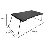 O Suporte Notebook Preto Carisma é um acessório de apoio projetado para superfícies planas, como camas ou sofás. O produto possui estrutura fabricada em MDP com revestimento externo em tecido sintético PVC (corino) e acabamento interno em forro de TNT. A base de sustentação é composta por pés de metal com acabamento em pintura epóxi na cor preta, apresentando sistema dobrável que facilita o armazenamento e o transporte do item quando não está em uso.Esta mesa para notebook possui dimensões fixas de 60.5 cm de largura por 22 cm de altura, com profundidade de 35 cm. O tampo oferece área de trabalho para computadores portáteis e periféricos. O uso principal deste suporte é elevar o dispositivo em relação à superfície de contato, permitindo o uso do aparelho em diferentes ambientes internos.O produto é entregue montado e pronto para uso, pesando 1 kg. É importante observar as medidas de largura e profundidade para garantir a compatibilidade com o tamanho do notebook utilizado.ESPECIFICAÇÕES DETALHADAS:Estrutura principal composta por painel de MDP.Revestimento externo em Tecido Sintético PVC (Corino).Acabamento interno em forro de TNT.Pés metálicos com sistema de fechamento dobrável.Pintura dos pés em acabamento Epóxi.Peso total do produto de 1 kg.Superfície de apoio com 60.5 cm de largura.TABELA TÉCNICA:Nome do Produto: Suporte Notebook - PretoMarca: CarismaModelo: DobrávelCor: PretoMaterial da Estrutura: MDPMaterial do Revestimento: Tecido Sintético PVC e TNTMaterial dos Pés: MetalTipo de Pintura: EpóxiLargura: 60.5 cmAltura: 22 cmProfundidade: 35 cmPeso: 1 kgItens Inclusos 01 Suporte Notebook - Preto