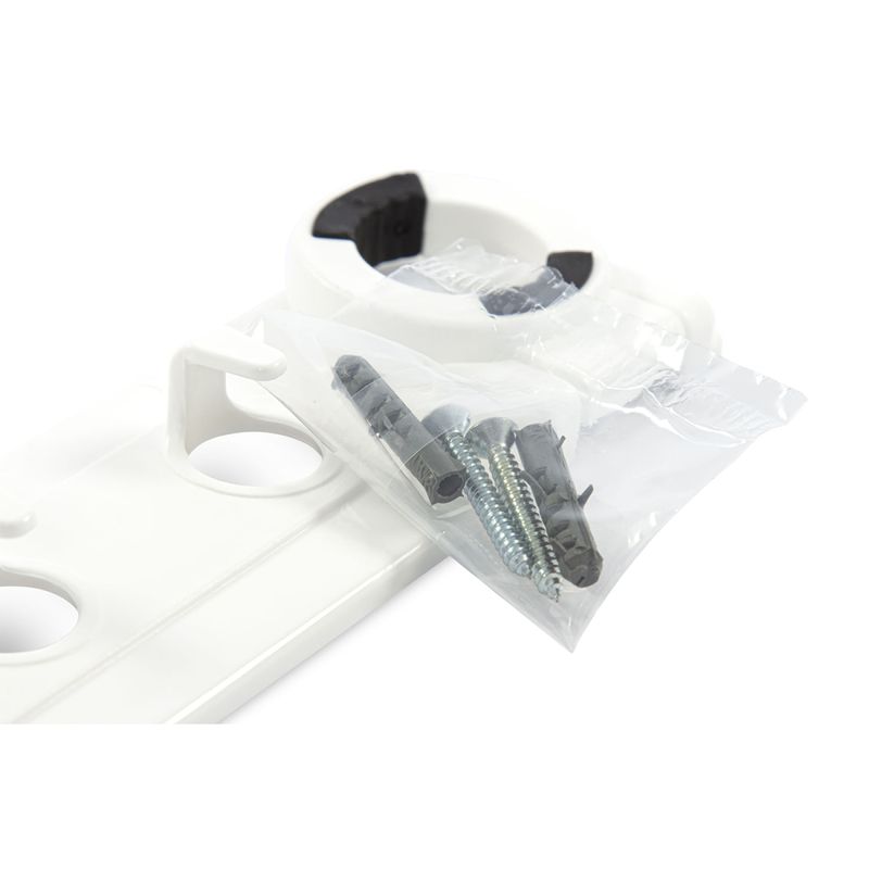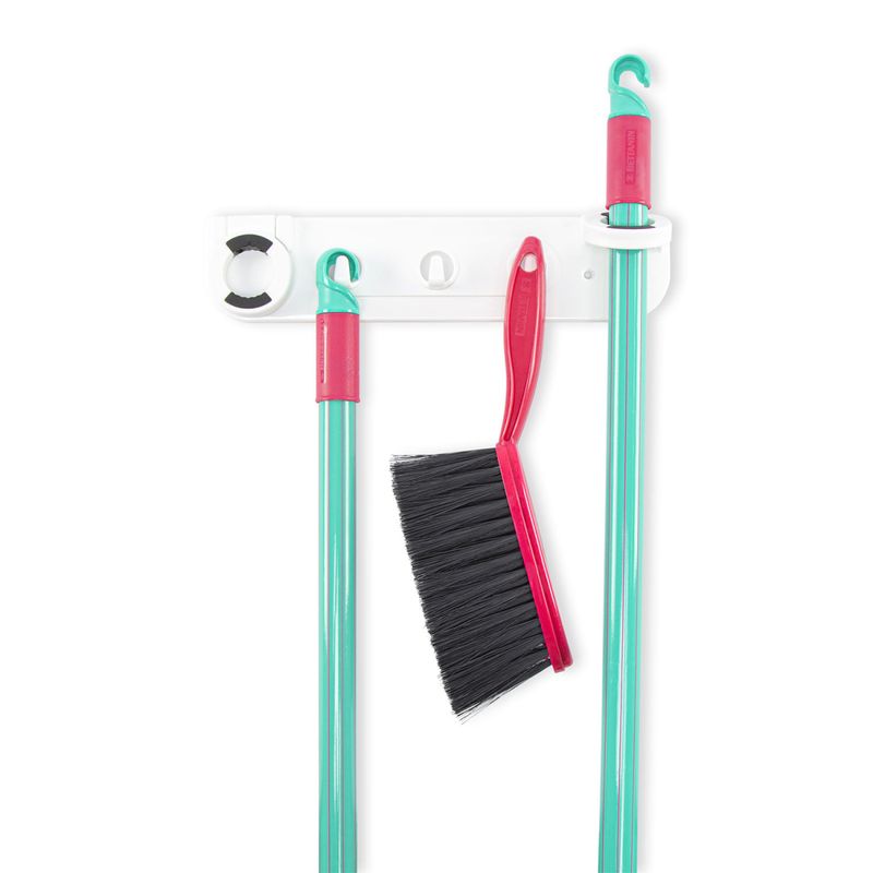 Suporte plástico ideal para pendurar vassouras, rodos, pás e outros utensílios de limpeza. - Comporta 5 Utensílios. - Tem 2 Encaixes e 3 ganchos. Já vem com parafusos e buchas. - Suporte ideal para pendurar vassouras, rodos, pás e outros utensílios de limpeza. Conteúdo: 01 Suporte Cor: Branca Fabricante: Bettanin