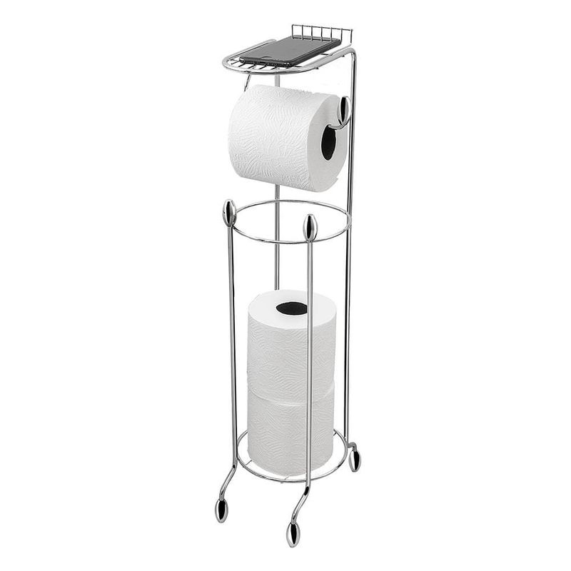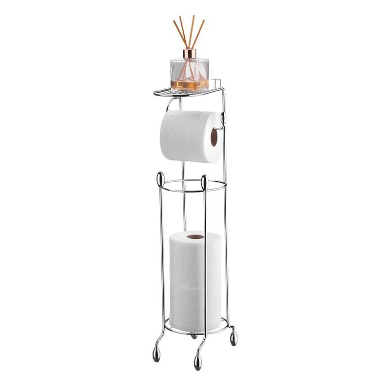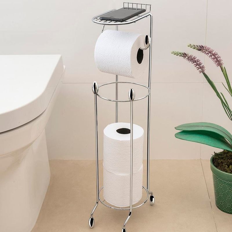 O Suporte de Papel Higiênico de Chão Utimil com prateleira organiza seu banheiro com praticidade. Fabricado em arame de aço cromado com ponteiras em ABS cromado, o suporte comporta até 3 rolos de papel reserva e 1 rolo em uso, mantendo tudo sempre à mão de forma funcional e discreta. O grande diferencial é a pequena prateleira adicional, que proporciona ainda mais conveniência e um toque elegante ao ambiente. Com design compacto e acabamento refinado, é perfeito para quem busca aliar funcionalidade e sofisticação.