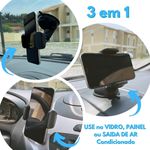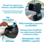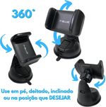 Suporte Para Celular Carro 360 Graus Com Ventosa Silicone E Base GiratóriaSuporte para celular com rotação 360 graus e ventosa de silicone para fixação no painel do carro.Design robusto e sem parafusos, com clipe flexível para smartphones de 3,5 a 6 polegadas.Base giratória permite ajuste vertical e lateral do celular.Ventosa com adesivo que não deixa resíduos ou manchas.Dimensões: 10,5 cm x 8,9 cm x 7,6 cm e peso de 110 g.Material: ABS e silicone.ESPECIFICAÇÕES TÉCNICAS- Nome do produto: Suporte Para Celular Carro 360 Graus Com Ventosa De Silicone- Categoria: Acessórios Para Automóveis > Suportes Para Celular- Material principal: ABS e silicone- Dimensões (A x L x P): 10,5 cm x 8,9 cm x 7,6 cm- Peso: 110 g- Capacidade: Smartphones de 3,5 a 6 polegadas (expansível até 90 mm de largura)- Itens inclusos: 1 suporte para celular, manual de instruções- Uso recomendado: Fixação no painel do carro para uso com GPS ou chamadas- Rotação: 360 graus- Fixação: Ventosa de silicone com adesivo- Rotação de 360 graus- Ventosa de silicone com adesivo para fixação no painel- Não deixa resíduos ou manchas- Compatível com smartphones de 3,5 a 6 polegadas- Clipe flexível expansível até 90 mm de larguraConteúdo Da Embalagem- 1 suporte para celular 360 graus- Manual de instruçõesComo Usar E Cuidados- Ambientes ideais: Painel do carro, superfícies lisas e limpas.- Cuidados necessários: Limpar a superfície de fixação antes da instalação para garantir aderência. Evitar exposição prolongada ao sol para preservar o silicone.- Compatível com: Smartphones de 3,5 a 6 polegadas.- Instalação: Remover a película protetora da ventosa, pressionar firmemente no painel do carro e ajustar o clipe para fixar o celular.O Suporte Para Celular Carro 360 Graus Com Ventosa De Silicone é ideal para motoristas que buscam praticidade e segurança. Com rotação de 360 graus, permite ajustar o celular na posição vertical ou lateral, facilitando o uso do GPS ou atendimento de chamadas. A ventosa de silicone fixa firmemente no painel do carro sem deixar resíduos, e o design robusto garante estabilidade. Compatível com smartphones de 3,5 a 6 polegadas, é perfeito para qualquer modelo.