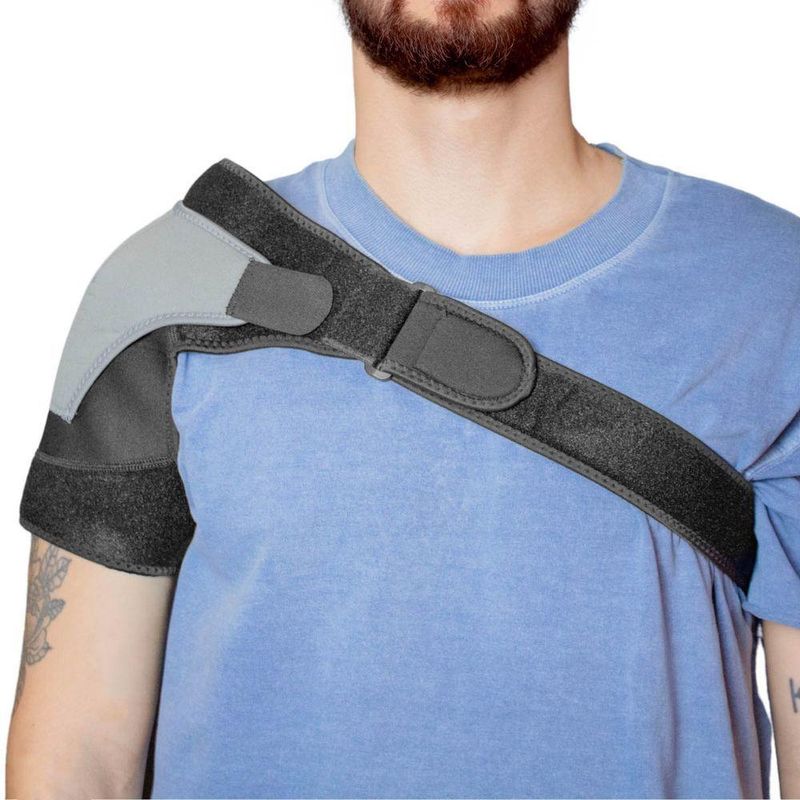 Suporte Para Ombro Ombreira Ajustavel Unissex Esporte FutebolSuporte Para Ombro Ombreira Ajustável Unissex Esporte FutebolO Suporte para Ombro auxilia no proteção e recuperação de lesões na região dos ombros, proporciona também o aumento da estabilidade e firmeza da articulação, oferecendo mais segurança para a prática esportiva. Auxilia na estabilidade e firmeza da articulação, oferecendo mais segurança para práticas esportivas, e promove o alívio de tensões musculares, o esforço e dores locais.Especificações Técnicas:- Modelo: Ombreira Ajustável Bilateral REF:7397- Material: Neoprene, Poliéster, Elastano.- Cor: Preto- Lado do Ombro: Esquerdo e Direito (Bilateral)- Tamanho: Único- Dimensões Aprox.:Comprimento - 25cmComprimento Alça Bíceps Ajustável - 36cmCircunferência Ajustável (Ombro/Peito) - 77cm(Min.) até 103cm (Máx.)- Peso Aprox.: 130gItens Inclusos na Embalagem:- 01x Ombreira Ajustável