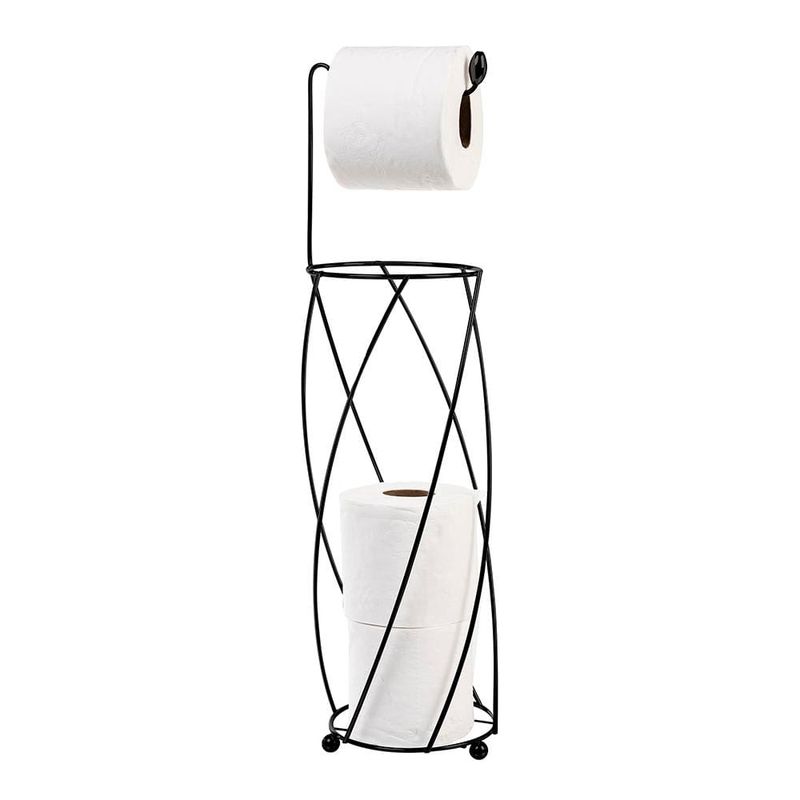 O suporte de papel higiênico de chão Utimil é indispensável para quem deseja aliar organização, funcionalidade e elegância no banheiro. Com design moderno e inovador, acomoda até 4 Rolos de papel higiênico: 3 rolos reservas e 1 rolo em uso, mantendo tudo sempre à mão e com estilo. Fabricado em arame de aço com pintura epóxi preta e ponteiras em PVC, oferece resistência e durabilidade sem abrir mão da estética sofisticada. Capacidade para 4 rolos Estrutura resistente e firme Ideal para banheiros modernos Acabamento preto brilhante