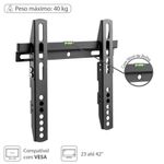 Suporte Tv Fixo Led Lcd 23-42 Stf100Eleve a experiência de home theater com o Suporte para TV Led Lcd Fixo STF100 da Vinik, a escolha perfeita para TVs de 23'' a 42'' de até 40kg. Com um perfil ultra-fino de apenas 22mm, este suporte discreto realça a beleza da sua tela enquanto se funde perfeitamente na sua decoração.O design inteligente da placa aberta proporciona amplo espaço para organização de cabos, garantindo uma instalação limpa e profissional. Além disso, a arquitetura aberta otimiza a ventilação, evitando sobreaquecimento e prolongando a vida útil da sua TV.O Suporte STF100 oferece flexibilidade com deslocamento lateral, permitindo que você ajuste a posição da sua TV com precisão para uma visualização ideal. A instalação é simplificada pelo sistema de nivelamento com bolha integrada, garantindo que sua TV fique perfeitamente alinhada.Com compatibilidade VESA universal (75x75, 100x100, 200x100 e 200x200) e construção robusta em aço de 1.5mm com revestimento em pó preto fosco, o STF100 oferece durabilidade e segurança para sua TV, ideal para paredes sólidas. Experimente a combinação perfeita de sofisticação, funcionalidade e segurança com o Suporte para TV Led Lcd Fixo STF100 da Vinik.Eleve a experiência de home theater com o Suporte para TV Led Lcd Fixo STF100 da Vinik, a escolha perfeita para TVs de 23'' a 42'' de até 40kg. Com um perfil ultra-fino de apenas 22mm, este suporte discreto realça a beleza da sua tela enquanto se funde perfeitamente na sua decoração.O design inteligente da placa aberta proporciona amplo espaço para organização de cabos, garantindo uma instalação limpa e profissional. Além disso, a arquitetura aberta otimiza a ventilação, evitando sobreaquecimento e prolongando a vida útil da sua TV.O Suporte STF100 oferece flexibilidade com deslocamento lateral, permitindo que você ajuste a posição da sua TV com precisão para uma visualização ideal. A instalação é simplificada pelo sistema de nivelamento com bolha integrada, garantindo que sua TV fique perfeitamente alinhada.Com compatibilidade VESA universal (75x75, 100x100, 200x100 e 200x200) e construção robusta em aço de 1.5mm com revestimento em pó preto fosco, o STF100 oferece durabilidade e segurança para sua TV, ideal para paredes sólidas. Experimente a combinação perfeita de sofisticação, funcionalidade e segurança com o Suporte para TV Led Lcd Fixo STF100 da Vinik.
