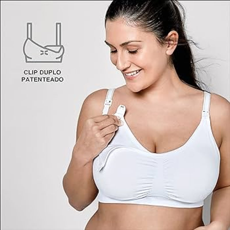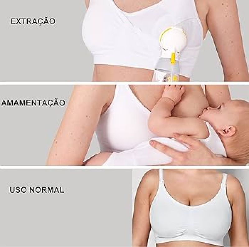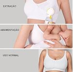 Sutiã de Amamentação e Extração 3 em 1 Tam G - Branco Medela Extraia e amamente com todo o conforto com o Sutiã de Amamentação e Extração da Medela. Com design versátil 3 em 1, é leve e ultra respirável. Feito com tecido macio e tecnologia Adaptive Stretch™ - elasticidade adaptável™ para um ajuste perfeito. Este sutiã pode ser usado: com o extrator de leite elétrico como sutiã de amamentação como sutiã normal Vantagens do Sutiã de Amamentação e Extração 3 em 1 da Medela O Sutiã de Amamentação e Extração 3 em 1 da Medela te ajuda a alimentar ou extrair leite para o seu bebé com todo o conforto. Sustentação média à elevada para manter os frascos no sutiã Extração com mãos livres em apenas 1 passo Leve e confortável com protetores respiráveis e material suave ao toque Tecido com tecnologia Adaptive Stretch™ (elasticidade adaptável) suave ao toque para um ajuste perfeito. Se adapta às mudanças no seu corpo Frente móvel abaixa totalmente para que você possa desfrutar ao máximo do contacto pele a pele enquanto amamenta, ajudando a criar laços com o seu bebé Compatível com a maioria dos funis de extração dos extratores elétricos Disponível nas cores preta ou branca, do tamanho P ao GG para um ajuste perfeito. 94% nylon, 6% spandex/elastano Pode ser lavado à máquina até 60ºC/140ºF, no programa de roupas delicadas, apenas com branqueadores sem cloro, se necessário. Secar na secadora à temperatura baixa. Não passar a ferro. Não limpar a seco.