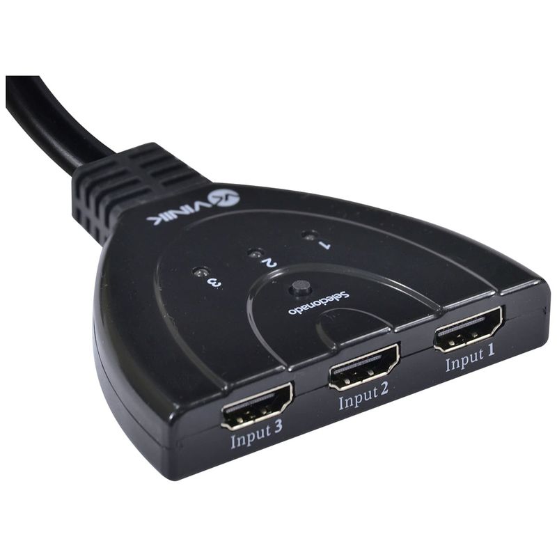 Switch HDMI Vinik 3 Entradas e 1 Saída 1.3V com Suporte 3D e Full HD 1080PO Switch HDMI Vinik é a solução ideal para expandir as conexões do seu televisor, permitindo conectar até três dispositivos HDMI a uma única entrada. Desfrute de praticidade e alta qualidade de imagem.Ideal para múltiplos aparelhos como consoles de videogame, Blu-ray players e computadores, este Switch HDMI 1.3V oferece compatibilidade com resoluções Full HD 1080P e suporte a tecnologia 3D. Sua instalação é simples e direta, proporcionando uma experiência de entretenimento fluida.DiferenciaisConectividade Ampliada: Conecte até 3 dispositivos HDMI simultaneamente a uma única porta da sua TV.Alta Qualidade de Imagem: Suporta resolução Full HD 1080P para imagens nítidas e vibrantes.Experiência Imersiva: Compatível com tecnologia 3D, ideal para filmes e jogos.Versatilidade: Perfeito para consoles, players de mídia e PCs.Mais sobre o ProdutoO Switch HDMI Vinik modelo 1.3V garante transmissão de sinal estável e de alta fidelidade.Evita o desgaste das portas HDMI da TV com a troca constante de cabos.Design compacto e discreto, integrando-se facilmente ao seu setup.Ficha TécnicaMarca: VINIKNome: SWITCH HDMI 3 ENTRADAS E 1 SAÍDA 1.3V COM SUPORTE 3D E 1080PEAN: 7898547289940Código de Referência: 26499