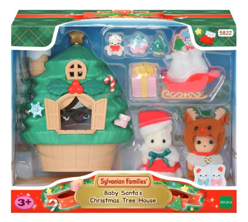 Sylvanian Families Casa da Árvore de Natal da Bebê Mamãe Noel Epoch Magia natalina em cada detalhe! Celebre o Natal com encanto e ternura com a Casa da Árvore de Natal da Bebê Mamãe Noel da Sylvanian Families! Este conjunto de edição limitada transforma a época mais mágica do ano em uma adorável brincadeira cheia de imaginação. A casinha em formato de árvore de Natal é o cenário perfeito para as pequenas aventuras dos bebês Leopardo das Neves e Cachorro Caramelo, que vêm vestidos com trajes natalinos de Papai Noel e rena. O conjunto inclui também um trenó, presentes, enfeites temáticos e uma mini árvore, recriando todo o charme e a alegria das festas de fim de ano. Destaques e Benefícios: Edição limitada sazonal item colecionável perfeito para presentear ou decorar. Inclui bebê Leopardo das Neves e bebê Cachorro Caramelo, com fantasias natalinas exclusivas. Casa em formato de árvore de Natal, com detalhes encantadores e espaço interno para brincadeiras. Trenó funcional que pode carregar presentes ou um dos bebês. Diversos enfeites e acessórios para personalizar o cenário: bengala doce, floco de neve, bota, mini árvore, brinquedo de pelúcia e muito mais. Estimula a imaginação, o faz de conta e o espírito natalino. Indicado para crianças a partir de 3 anos. Conteúdo da Embalagem: 1 Bebê Leopardo das Neves 1 Bebê Cachorro Caramelo 1 Casa em formato de árvore de Natal 1 Trenó 1 Caixa de presente e tampa 1 Saco do Papai Noel 3 Enfeites (bengala doce, floco de neve e bota) 1 Mini árvore de Natal 1 Brinquedo de pelúcia 1 Mini nave voadora 1 Cartão de Natal