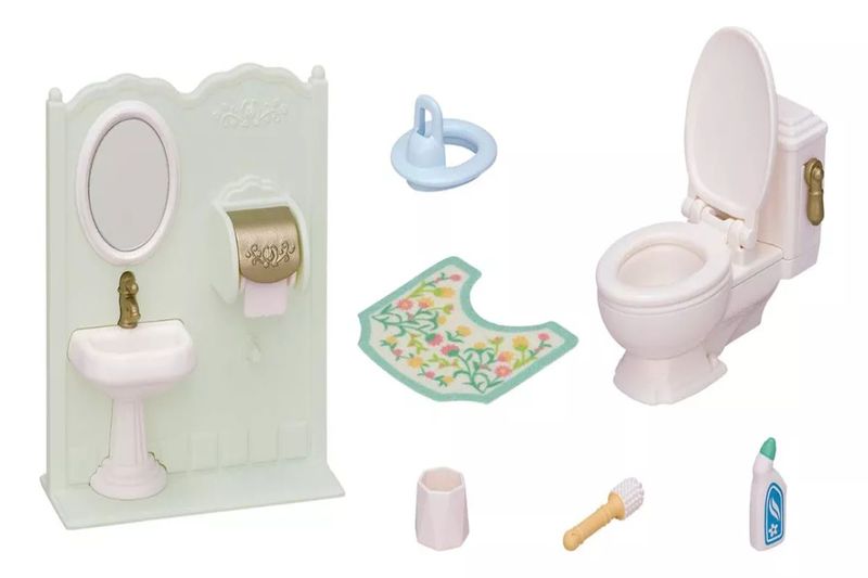 Sylvanian Families Conjunto De Toalete Banheiro Epoch 5740 Prepare-se para adicionar um toque de elegância e funcionalidade ao mundo dos seus Sylvanian com o incrível Conjunto de Toalete da Sylvanian Families! Este conjunto oferece tudo o que seus personagens precisam para cuidar de suas necessidades diárias com estilo e conforto. - Este conjunto apresenta um toalete elegantemente projetado, com detalhes realistas que dão vida ao ambiente dos Sylvanian. -Este conjunto é perfeito para incentivar o jogo criativo e promover hábitos saudáveis de higiene. - Fabricado com materiais de alta qualidade e atenção aos detalhes, garantindo durabilidade e segurança durante as brincadeiras. - Indicado para crianças acima de 3 anos. - Conteúdo:Vaso sanitário, pia, assento de penico, escova para vaso sanitário, porta-escova, limpador de vaso sanitário, tapete. Com o selo de certificação do INMETRO, você pode ter certeza de que está escolhendo um brinquedo que cumpre as normas de segurança e qualidade.
