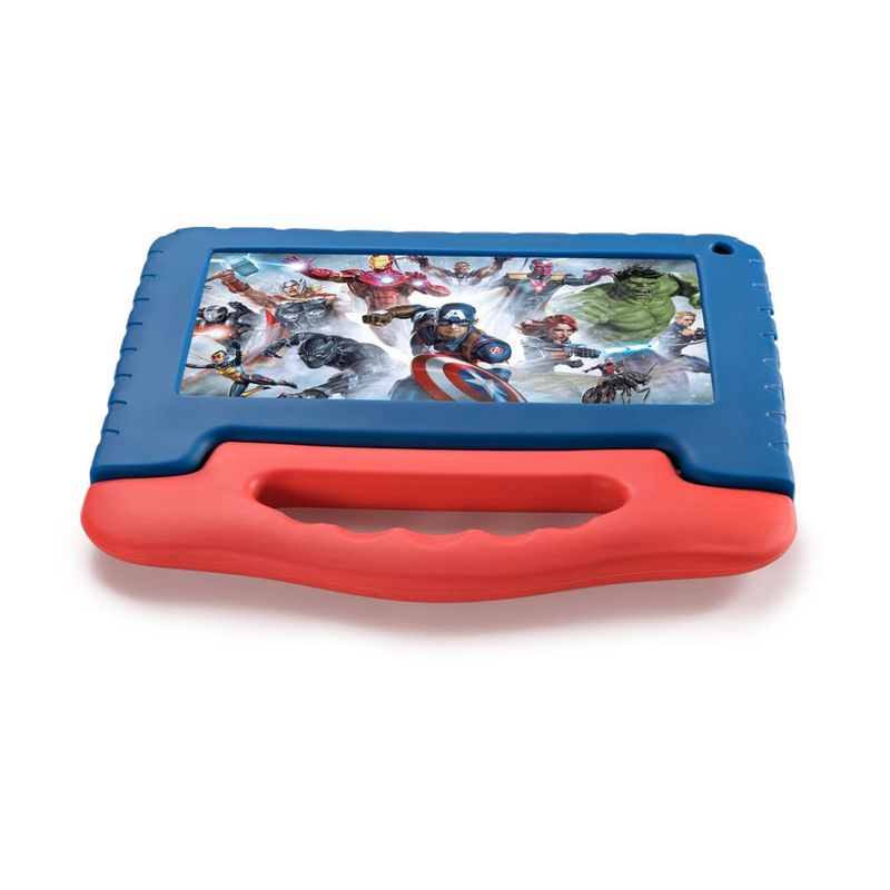 Pura diversão com os super-heróis favoritos!O Tablet Infantil Avengers é um tablet com acesso seguro à internet para entreter a criança na companhia do Homem de Ferro, Thor, Hulk e Capitão América. Tela de 7 polegadas. Controle parental. Case protetora resistente. Google Kids Space. Memória de 64 GB.Mais segurança e conforto: controle parentalO Tablet Infantil Avengers possui um sistema de controle parental que permite às crianças se divertirem com mais segurança.Ative funções de controle sobre os conteúdos e o tempo que seus filhos podem usar. Configure quais apps podem ser instalados e quais páginas podem ser acessadas.Design pensado para crianças: capa emborrachada e mais resistenteO Tablet Infantil Avengers vem com uma case emborrachada e com alça que protege o dispositivo e garante mais conforto e segurança.Para sua tranquilidade ele tem 1 ano de garantia.Google Kids Space: diversão e conhecimento em um só lugarCom o Google Kids Space, a diversão ganha novos contornos e formas, que incluem: Apps e jogos aprovados por professores. Livros selecionados por especialistas. Vídeos do YouTube Kids. Brincadeiras e atividades práticas e estimulantes. E muito mais!Funcional e prático para as crianças Android 13 Go Edition. Tela DBF com mais brilho e nitidez. Câmera frontal para tirar fotos, gravar vídeos e muito mais. 4 GB de memória RAM e 64 GB de armazenamento. Capacidade expansível de até 128 GB com cartão de memória*. Bateria com autonomia de até 3 horas de uso.*Cartão de memória microSD não incluído.*Imagens meramente ilustrativas.