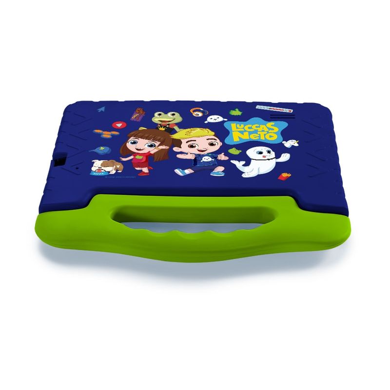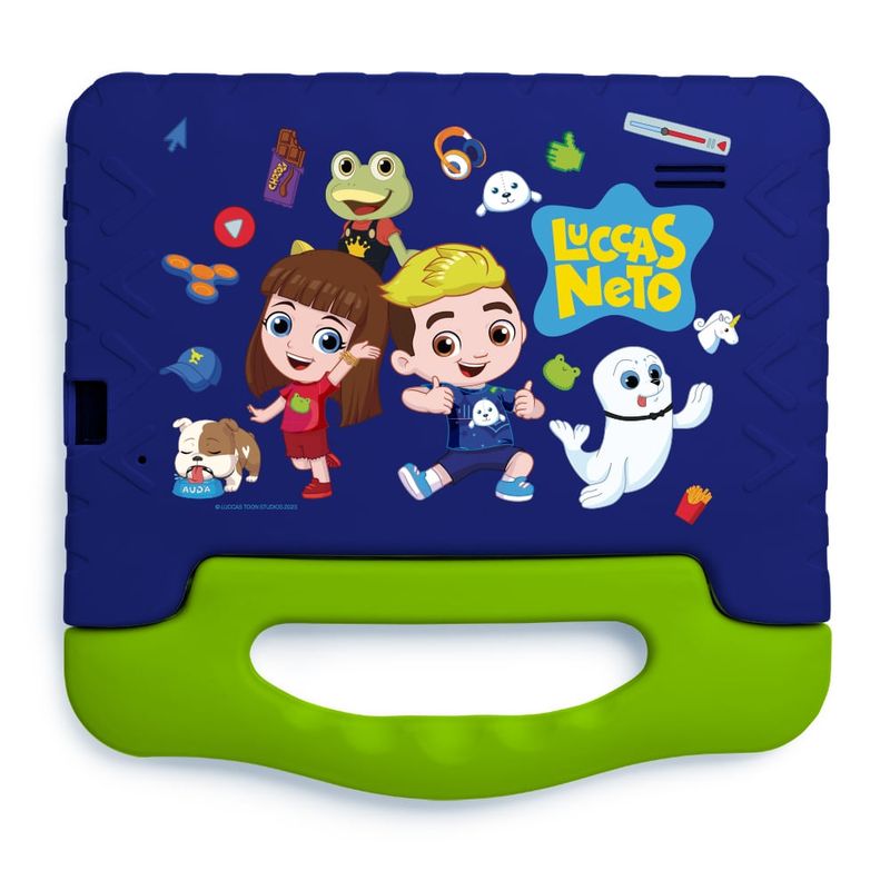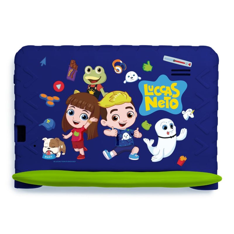 Acesso seguro à internet até pra quem é uma foca! O Tablet Infantil Luccas Neto garante diversão e desenvolvimento! Entretenimento e muito mais em um tablet feito para o uso infantil. Tela de 7 polegadas. Controle parental. Case protetora resistente. Google Kids Space. Memória de 64 GB.Mais segurança e conforto: controle parentalO Tablet Infantil Luccas Neto possui um sistema de controle parental que permite às crianças se divertirem com mais segurança.Ative funções de controle sobre os conteúdos e o tempo que seus filhos podem usar. Configure quais apps podem ser instalados e quais páginas podem ser acessadas.Design pensado para crianças: capa emborrachada e mais resistente O Tablet Infantil Luccas Neto vem com uma case emborrachada e com alça que protege o dispositivo e garante mais conforto e segurança.Para sua tranquilidade, ele tem 1 ano de garantia.Google Kids Space: diversão e conhecimento em um só lugarCom o Google Kids Space, a diversão ganha novos contornos e formas, que incluem: Apps e jogos aprovados por professores. Livros selecionados por especialistas. Vídeos do YouTube Kids. Brincadeiras e atividades práticas e estimulantes. E muito mais!Funcional e prático para as crianças Android 13 Go Edition. Tela DBF com mais brilho e nitidez. Câmera frontal para tirar fotos, gravar vídeos e muito mais. 4 GB de memória RAM e 64 GB de armazenamento. Capacidade expansível de até 128 GB com cartão de memória**. Bateria com autonomia de até 3 horas de uso.*Cartão de memória microSD não incluído.*Imagens meramente ilustrativas.