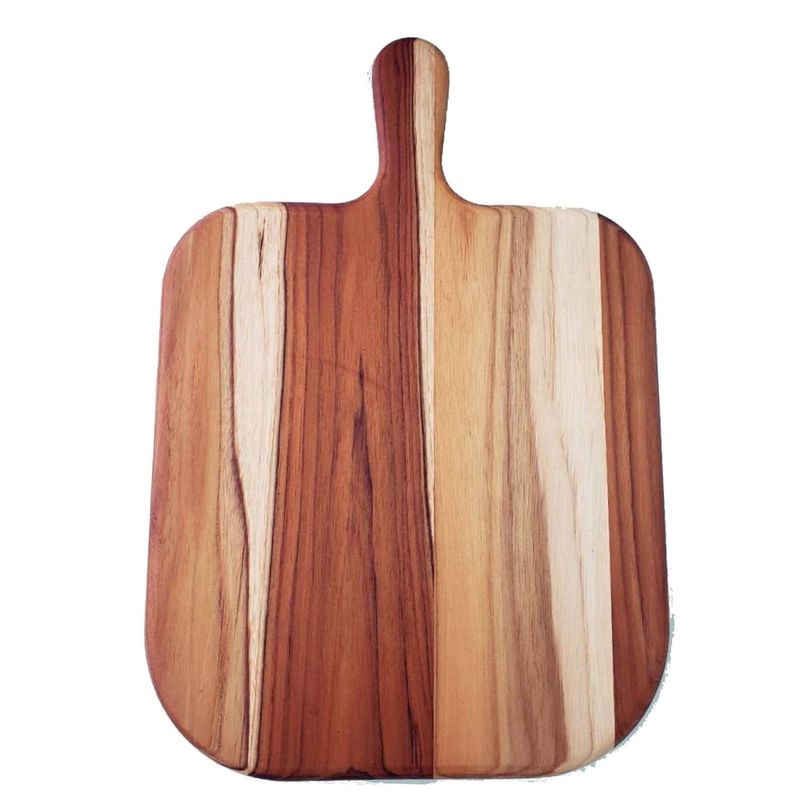 Tabua alongada com cabo Tramontina em Madeira Teca FSC com acabamento em Óleo Mineral. Tramontina - Tabua alongada com cabo Tramontina em Madeira Teca FSC com acabamento em Ãleo Mineral. Facilite o preparo das suas refeições com a Tábua alongada com Cabo Tramontina em madeira Teca FSC. Desenvolvida para preparar e servir, esta tábua é perfeita para os mais variados alimentos, garantindo maior praticidade e estilo. Madeira Teca FSC.Ãleo Mineral. Cuidados com o produto Antes do primeiro uso, lave o produto e enxágue bem. Após cada uso, lave normalmente o produto com esponja macia, sabão e detergente. Seque com toalha de pano. Guarde em locais arejados [evite ambientes abafados como gavetas e armários]. Não lave o produto em lava-louça, nem utilize esponja de aço. Não deixe o produto submerso em água. Não deixe o produto secar ao sol, nem deixe secar em pé na pia. Não empilhe as peças quando estiverem úmidas. Não leve o produto ao forno ou geladeira. Garantia 90 dias para vÃcios ou defeito de fabricação - Este produto é feito de madeira FSC. Ao escolher este produto, você ajuda a cuidar das florestas do mundo. Saiba mais: www.fsc.org. FSC - C003079 - Características Gerais do Produto: Garantia: • 3 Meses