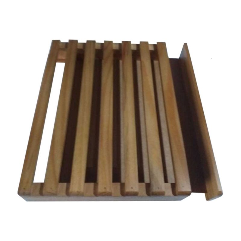 Sua mesa mais bonita e limpa, sem migalhas, ecologica Tabua de corte em madeira, com gaveta para tirar as migalhas Bonita, vai te ajudar na organização. Feita a mão por artesãos de Santa Felicidade - Curitiba-Pr. Fapara cortar pão, com cabo vermelho e lamina de inox recoberto por titanio Material: Madeira Tamanho: 32x 25 x 5cm