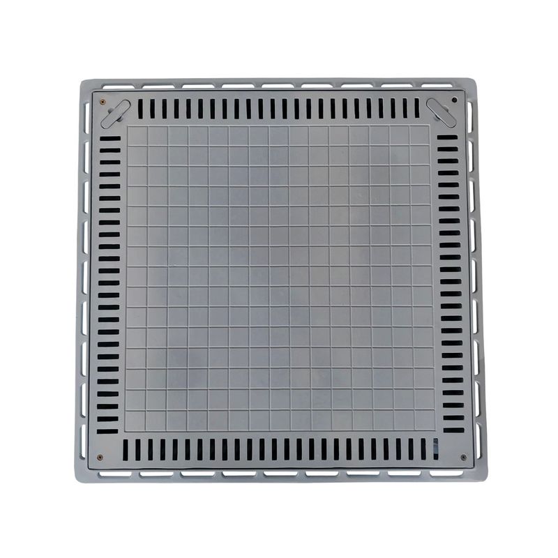 Tampa Casa de Máquina Piscina Lisa Simples Grelha 80x80cm C O tampão com grelha foi desenvolvido especialmente para casas de máquinas, seu diferencial é a grelha que permite a circulação de ar dentro da casa de máquina, diminuindo a umidade e aumentando a vida útil dos equipamentos (bombas, motores, filtros de piscina e outros). Possui em seu aro um sistema próprio de captação de água, que permite seu escoamento para a rede pluvial, não deixando que a água entre em contato com os equipamentos. Ideal para casa de máquinas de grande porte, possui uma área livre que permite um melhor aproveitamento do espaço na amplitude horizontal. Obs: Favor considerar a cor primária, demais fotos ilustrativas. Características do Produto:Escoamento: 50mm com saída lateral da caixa coletora.Indicação: Casa de Máquinas de Piscinas.Carga Máxima Nominal por eixo: 500Kg.Acabamento: Pintura Eletrostática.Material: Alumínio Fundido.Filtro: Até 60cm.Cor: Cinza. Dimensões Externas:Comprimento: 80cm.Peso: 22,500Kg.Largura: 80cm.Altura: 8,3cm. Itens Inclusos: 01 Tampa Casa de Máquina Simples Lisa Com Grelha Cinza 80x80cm. Código: 3157GDA