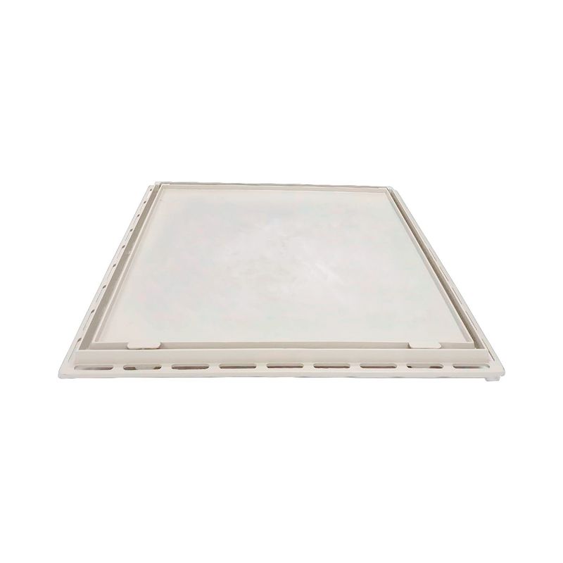 Tampa Casa Máquina Piscina Rebaixada Art Invisível 90x90 B2 O tampão com grelha invisível foi desenvolvido especialmente para casas de máquinas, seu diferencial é a grelha invisível que permite a circulação de ar dentro da casa de máquina, diminuindo a umidade e aumentando a vida útil dos equipamentos (bombas, motores, filtros de piscina e outros). Possui em seu aro um sistema próprio de captação de água, que permite seu escoamento para a rede pluvial, não deixando que a água entre em contato com os equipamentos. O tampão articulado possui um sistema de trava que mantém a tampa aberta, facilitando a manutenção na casa de máquinas. Ideal para casa de máquinas de grande porte, possui uma área livre que permite um melhor aproveitamento do espaço na amplitude horizontal. Sua abertura é articulada e possui travas que mantém a tampa aberta, o que garante segurança e praticidade para realização de manutenções. O modelo da tampa rebaixada foi desenvolvido para o assentamento em cerâmica (piso) sendo uma ótima opção para que o ambiente fique harmonioso e discreto para sua casa de máquina. O revestimento de cerâmica deve ser colado com silicone. Obs: Favor considerar a cor primária, demais fotos ilustrativas. O produto não segue com o revestimento de cerâmica, fotos ilustrativas. Características do Produto:Altura do Rebaixo para assentamento de cerâmica: 2,2cm.Escoamento: 50mm com saída lateral da caixa coletora.Indicação: Casa de Máquinas de Piscinas.Carga Máxima Nominal por eixo: 400Kg.Acabamento: Pintura Eletrostática.Material: Alumínio Fundido.Filtro: Até 79cm.Cor: Branca. Dimensões Externas:Comprimento: 103cm.Largura: 103cm.Peso: 31,100Kg.Altura: 12cm. Itens Inclusos: 01 Tampa Casa de Máquina Articulada Rebaixada Grelha Invisível Branca 90x90cm. Código: 371902GDA
