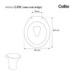Tampa De Vaso Lirio Branco Para Bacia CeliteA Tampa de Vaso Lirio Branco para bacia Celite é a escolha definitiva para elevar o padrão de higiene e sofisticação do seu banheiro!Sua proteção antimicrobiana avançada impede o crescimento de germes e bactérias, proporcionando um ambiente mais limpo e para você e sua família. Comprovada por normas internacionais, essa tecnologia mantém sua eficácia ao longo do tempo. Durabilidade e Resistência: A única marca que utiliza MDF Ultra, muito mais durável e resistente. Contém camadas de pintura laqueada, este assento oferece não apenas beleza, mas também conforto térmico e alta resistência. As ferragens em alumínio anodizado, além de um acabamento refinado, trazem resistência extra, pois não oxidam nem enferrujam. Compatibilidade: Encaixe perfeito para o modelo Lirio da marca Celite, com ou sem caixa acoplada. Detalhes: Cor: Branco Limpeza: Recomenda-se a limpeza com pano úmido e sabão neutro, não utilizar produtos abrasivos ou químicos. Não pode ser lavado com água abundante ou ficar molhado, não pode usar ducha higiênica. Fabricante do Assento Sanitário: Pontto Lavabo (enviado na caixa conforme foto no anúncio). Instalação Descomplicada: Acompanha parafusos de fixação e embalagem com instruções de montagem. Encaixe os parafusos com borrachas sobre os buracos da bacia sanitária e aperte com a chave de fenda. Observação: O código 6LPF gravado na louça sanitária refere-se ao fluxo de água da descarga, não ao modelo da mesma. Importante: Este anúncio inclui somente o produto conforme descrito acima. Elementos decorativos das fotos não estão inclusos. RBN: Casa/Banho/Instalações e Acessórios de Banheiro/Vasos Sanitários e Peças/Assento de Vaso Sanitário | Conteúdo da Embalagem: 01 Assento Sanitário | Tipo: Assento Sanitário | Produto: Assento Sanitário | Site do Fabricante: | Marca do Assento Sanitário: Pontto Lavabo | Garantia: 6 meses contra de fabricação | Dica: Instalação: sem desmontar o produto, posicione sobre o vaso sanitário e encaixe os dois parafusos com as borrachas pretas dentro do furo do vaso. Aperte com a chave de fenda no sentido horário até ficar firme. | Para Vaso Sanitário do Modelo: Lirio | Para vaso Sanitário da Marca: Celite | Cor: Branco | Tonalidade: Branco | Material do Assento Sanitário: MDF Laqueado | Instruções de Limpeza: Recomenda-se a limpeza com pano úmido e sabão neutro, não utilizar produtos abrasivos ou químicos. Não pode ser lavado com água abundante ou ficar molhado, não pode usar ducha higiênica. | Almofadado?: Não | Peso do Produto: | Tipo de Fechamento: Fechamento Comum | Material da Fixação: Alumínio Anodizado | Precisa de baterias ou pilhas: Não | Regulamentações aplicáveis a produtos perigosos: Não aplicável | Código de certificação: Não aplicável | Ponto de Destaque01: Produzido em MDF Laqueado | Ponto de Destaque02: Ferragem em Alumínio Anodizado (não enferruja, não oxida) | Ponto de Destaque03: Possui 15cm de distância entre furos | Ponto de Destaque04: Produto vai completo, fácil instalação | Ponto de Destaque05: Pontto Lavabo | Termos de Pesquisa01: Assento Sanitário; Tampa de Vaso Sanitário; Lirio Branco Celite; Lirio 6lpf; Celite 6lpf | Quantidade de itens: 1 | Fonte de energia: Não aplicável | de caixas: 1 | Dimensões da embalagem: Altura: 5cm x Largura: 40cm x Comprimento: 50cm