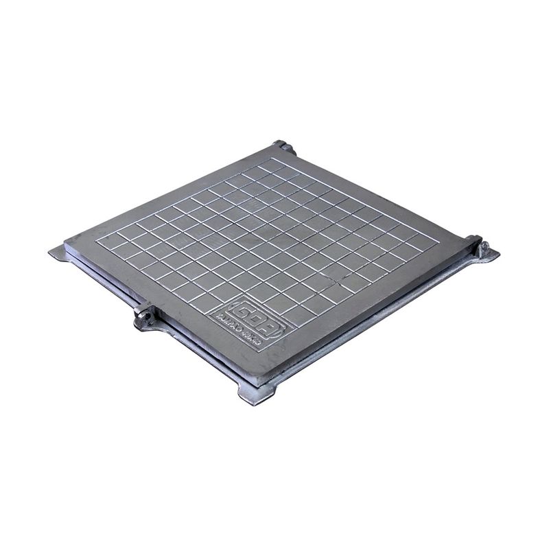 Tampa Tampão Chão Articulado Porta Cadeado Reforçado 50x50cm Projetado para tampar caixas de passagem de tubulação, esgoto, águas pluviais, água potável, redes de telecomunicações, eletricidade entre outros. Facilitando o acesso a válvulas, registros e quadro de distribuição, sua articulação dificulta o furto da tampa que possui um sistema porta cadeado que restringi o acesso a pessoas não autorizadas. Tem um diferencial por ser reforçado suportando mais peso. Especificações Técnicas:Modelo: Tampão Quadrado Articulado Porta Cadeado.Acabamento: Pintura cor alumínio (esmalte sintético).Carga Máxima Nominal por Eixo: 800Kg.Indicação: Caixas de Passagem.Material: Alumínio Fundido.Medida Total: 54,5x52,5cm.Medida Tampa: 50x50cm.Peso: 6,550Kg.Altura: 2,6cm. Itens Inclusos: 01 Tampa Tampão Chão Articulado Porta Cadeado Reforçado 50x50cm. Código: 3068GDA ProdutoLojaPlast.
