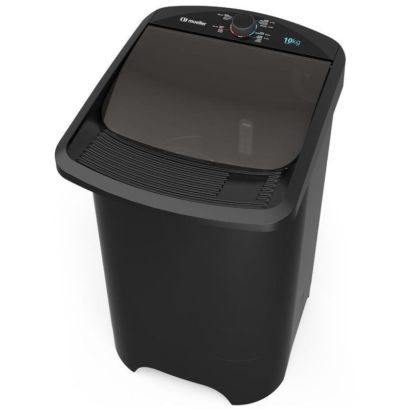 Tanquinho De Lavar Roupa Mueller 10 Kg Com Superesfregador MLT10C Preto 110VCapacidade de 10 kg de roupa secaO tanque permite a lavagem de edredom de casal soft.SuperesfregadorMaior esfregador do mercado, com encaixe especial e suporte para sabão, facilitando ainda mais sua rotina.4 Programas de LavagemProgramas com indicações do tempo de lavagem e as peças ideais.Smart WaveSistema exclusivo de lavagem que gera ondas no interior da cuba, aumentando a eficiência de lavagem.Filtro de FiaposRoupas livres de fiapos.Ciclo de Lavagem EconômicaCiclo econômico que lava suas roupas mais rápido e com menos consumo de energia.Agitador RemovívelÉ possível tirar para limpar e remover objetos que caiam embaixo do agitador, evitando que seja necessário levar na assistência técnica. Facilita a higienização do tanquinho.Sistema de RolamentoSistema exclusivo Mueller que movimenta as roupas é o mais durável do mercado. Construído com mancal de rolamento ao invés de buchas, garante menos desgaste e, por consequência, maior durabilidade do seu tanquinho.Ciclo com Dois MolhosGarante roupa mais limpa.Lavagem por TurbilhonamentoSistema que provoca menor atrito entre as roupas, garantindo menor desgaste e maior durabilidade dos tecidos.Informações TécnicasTipo: SemiautomáticaGarantia: 12 mesesCor: PretoCapacidade: 10 kgCapacidade de água na cuba (nível máximo): 98 LConsumo de energia (ciclo normal - água fria): 0,13 kW/hPotência (127V e 220V): 330 wattsClassificação de Eficiência Energética: AAltura: 90 cmLargura: 54 cmProfundidade: 66 cmPeso: 11,8 kgRecursos AdicionaisDesmontável: SimDispenser para Alvejante: NãoDispenser para Amaciante: SimDispenser para Sabão: SimEngates para Mangueira: ManualEntrada de Água: ManualEsfregador: SimFiltro para Fiapos: No gabineteGrade de Proteção no Motor: SimLava Edredom: Casal SoftMangueira de Entrada de Água: SimNúmero de Programas: 4Pés: Base dos pés desmontávelSaída de Água: Manual, com controle no painelSistema de Lavagem: TurbilhonamentoMaterial: PolipropilenoIMPORTANTECertifique-se de selecionar a VOLTAGEM COMPATÍVEL com as tomadas da sua residência. Caso a voltagem escolhida na finalização do pedido esteja incorreta, o produto não funcionará.