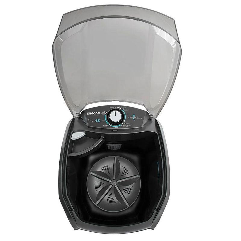 Tanquinho Lavamax Eco 15kg Preta Suggar 110VCaracterísticas GeraisCapacidade de lavagem: 15 kgIdeal para quem busca eficiência com baixo consumo de água e energiaTimer com programação de 0 a 28 minutos6 programas de lavagem para diversos tipos de roupas3 níveis de águaLavagem por turbilhonamentoFunção de 3 molhos com desligamento automáticoReúso de águaSistema de drenagemMaior batedor da categoriaLava edredom de casal tamanho KingDispenser para sabão com melhor mistura do produto (evita manchas e desperdícios)Filtro cata-fiapos para preservação das peçasModelo e IdentificaçãoCor: PretoModelo 127V: LE1521PTCódigo EAN 127V: 7908312818241Quantidade por caixa: 1 unidadeDimensões e Peso (com embalagem)Altura: 96,7 cmLargura: 54,6 cmProfundidade: 60,1 cmPeso: 11,54 kgDimensões e Peso (sem embalagem)Altura: 91,1 cmLargura: 49,8 cmProfundidade: 54,0 cmPeso: 10,19 kg