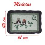 Tapete Patchwork Banheiro Cozinha Corujinha 100% Algodão 61x42 cm - Entre os diversos modelos, os tapetes são queridos pela sua praticidade no dia a dia e pela facilidade na hora da manutenção. Tapete Patchwork Corujinha. Material: 100% algodão. Tamanho: 61x42cm Características Gerais do Produto: • Material: Cerâmica • Cor: Verde Garantia: • Garantia contra avarias no transporte