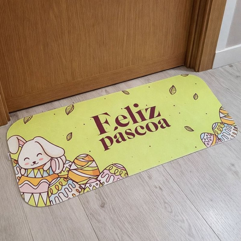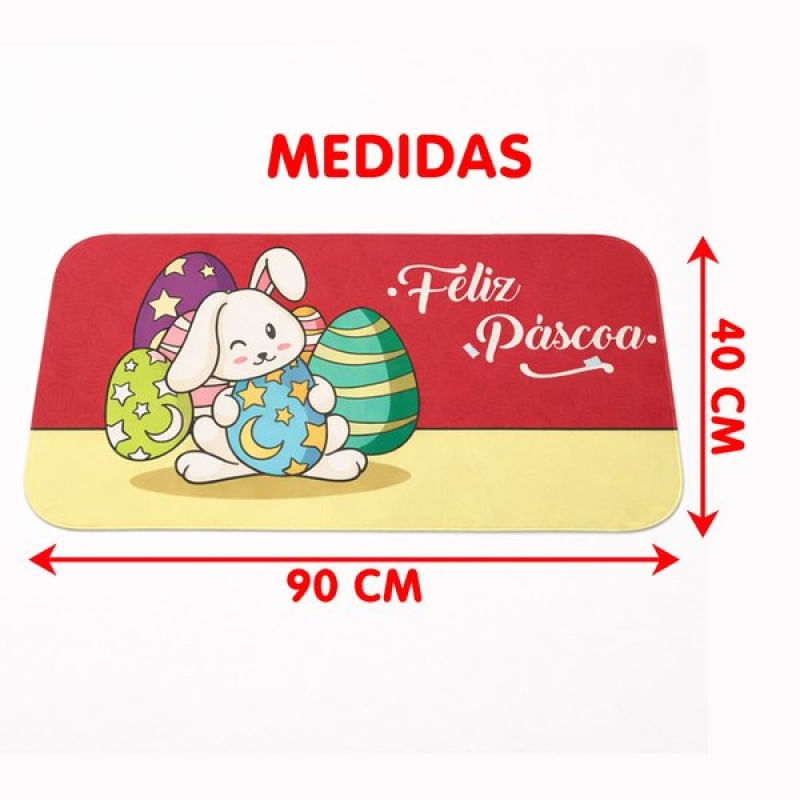 Tapete Porta Entrada Decorativo Páscoa Emborrachado 40x90cm Amarelo - O Tapete Decorativo de Páscoa é perfeito para receber visitas com estilo e alegria, trazendo um toque temático e acolhedor para sua porta. Produzido com material resistente e base emborrachada antiderrapante, ajuda a manter a casa mais limpa ao reter sujeiras e umidade dos calçados Destaques do produto: Tema decorativo de Páscoa Base emborrachada antiderrapante Ideal para porta de entrada, varanda ou área interna Tamanho: 40 x 90 cm Material 100% Poliéster Conteúdo da embalagem: 1x Tapete temático de páscoa de 40x90cm Características Gerais do Produto: • Material: Poliéster • Modelo: Tapete de Páscoa • Cor: Preto; Verde; Vermelho • Dimensões aproximadas: Largura 40cm x Comprimento 90cm Garantia: • Garantia do site - 1 Mês