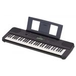 Teclado portátil de 61 teclas para iniciantes. Ação expressiva do teclado sensível ao toque, com funções sofisticadas com recursos avançados para o aprendizado e desenvolvimento musical.- 400 vozes de alta qualidade, 130 estilos de acompanhamento automático- 112 músicas, Song Book fácil (disponível via download na web)- Função de lição em nove etapas (Yamaha Education Suite)- Função de gravação- Entrada auxiliar para fonte de áudio externa- Master EQ / Estéreo Ultra-Wide- Modo Duo- Design compacto e portátil- Funciona com pilhas (6 AA)Especificações- Marca: Yamaha- Modelo: PSR-E360B- Origem: China- Cor: Preto- Teclas: 61- Resposta ao toque: Sim- Polifonia: 32- Vozes: 384 + 16 kits de bateria/SFX- Efeitos: Rev-X (9 tipos), Chorus 5 tipos, Eq Master 6 tipos, Estéreo Ultra-Wide 3 tipos- Número de estilos predefinidos: 130- Número de músicas predefinidas: 112- Funções: Lição em 9 etapas, Gravação, Metrônomo- Conectividade: Entrada DC 12V, Fone de ouvido, Pedal Sustain, AUX. IN Stereo mini jack- Amplificadores: 2 x 2,5W- Falantes: 2 x 12cm - Consumo: 6W com fonte PA-130- Fonte de energia: Fonte PA-130, PA-3C ou equivalente recomendado pela Yamaha, Seis pilhas alcalinas "AA" de 1,5 V (LR6), manganês (R6) ou seis pilhas "AA" recarregáveis de 1,2 V Ni-MH (HR6)- Dimensões (LxPxA) 94 x 31,6 x 10 cm- Peso: 4 kg Conteúdo da Embalagem- Teclado Arranjador 61 Teclas PSR E360 Preto Yamaha- 01 Fonte PA-130B - 01 Estante para partitura- Manual do Proprietário- Dimensões da Embalagem: (AxLxP) 16 x 38 x 107 cm*imagens meramente ilustrativas