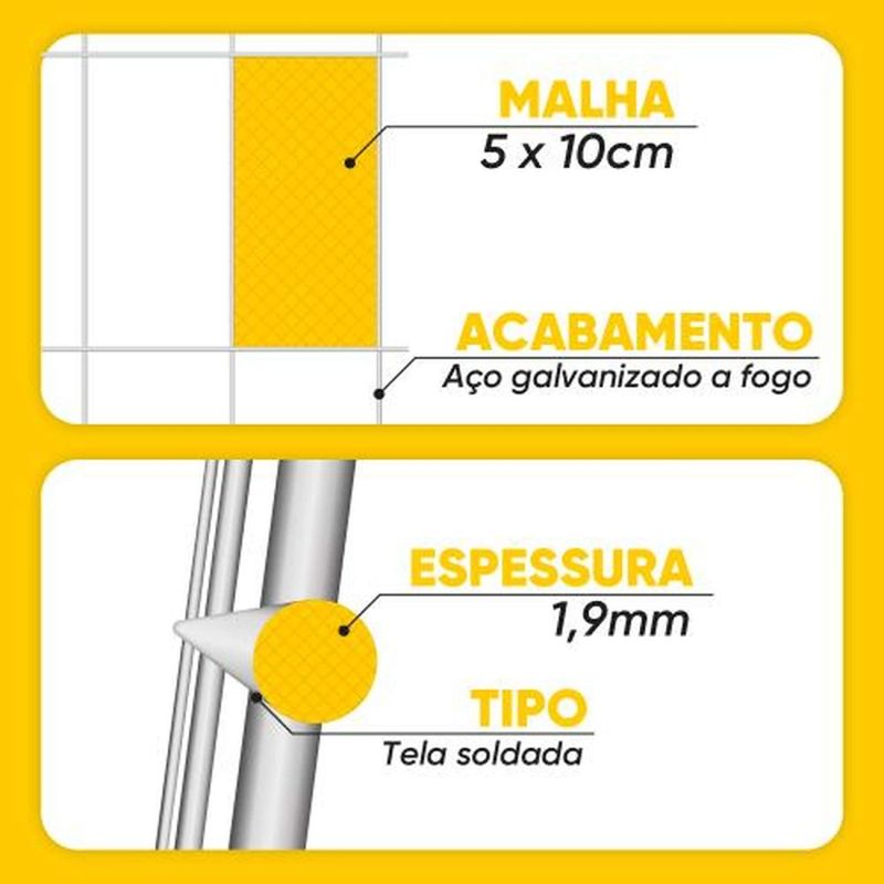 Tela Alambrado 25x1,80m Fio 1,9mm Malha 5x10cm - DTOOLS - TELADOOLS Universo do Lar: Proteção e Segurança para sua PropriedadeSe você busca por uma solução eficiente para proteger sua propriedade, a Tela Alambrado Fio 1,9mm - 25 x 1,80 metros (Malha 5 x 10cm) da DTOOLS Universo do Lar é a escolha perfeita. Com alta resistência e durabilidade, este produto é ideal para cercar terrenos, jardins, hortas, quadras esportivas e muito mais, garantindo a segurança que você e sua famÃlia merecem.- Proteja sua propriedade com qualidade e segurança- Ideal para cercar terrenos, jardins, hortas e quadras esportivas- Resistente e durável, garantindo maior vida útil- Fácil instalação e manutençãoEspecificações Técnicas:- Marca: DTOOLS Universo do Lar- Material: Fio de aço galvanizado- Espessura do fio: 1,9mm- Tamanho: 25 metros de comprimento x 1,80 metros de altura- Malha: 5 x 10cmProteja o que é importante para você com a Tela Alambrado Fio 1,9mm - 25 x 1,80 metros (Malha 5 x 10cm) da DTOOLS Universo do Lar. Qualidade e segurança que você pode confiar. -------- Descrição Original enviada pelo Fornecedor: TELA ALAMBRADO FIO 1,9MM - 25 X 1,80 METROS (MALHA 5 X 10CM) - DTOOLS Características Gerais do Produto: Garantia: • 3 Meses