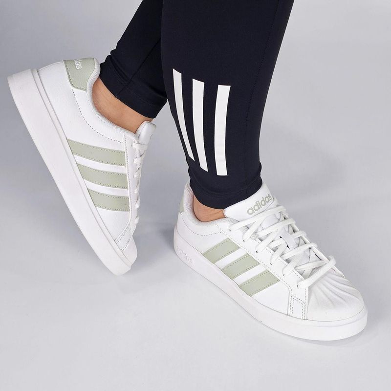 A gente adora os clássicos que são repaginados! Esse é o Adidas Streettalk, confeccionado em material sintético, com as 3 listras características da marca nos dois lados do tênis e com biqueira clássica e icônica no melhor street style! Palmilha em espuma, forro têxtil e solado emborrachado. Cabedal em material sintético Solado emborrachado Fechamento cadarço Medida aproximada do solado 3 cm Garantia: Produto original Adidas com garantia de fábrica contra defeitos de fabricação.
