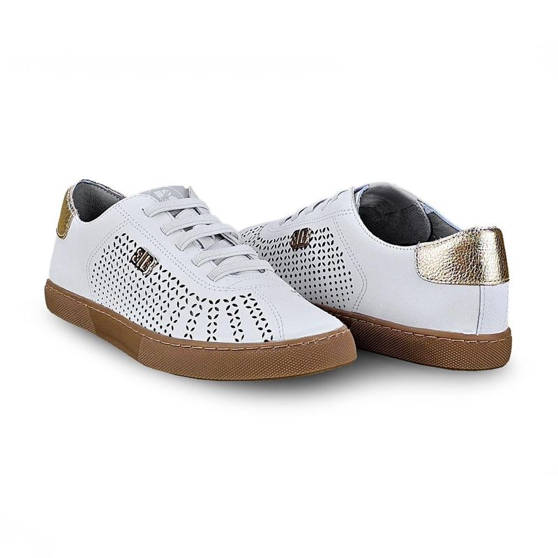Modernidade e praticidade em um modelo de tênis super confortável da Bottero, confeccionado em couro! Com o cabedal com detalhes de recorte a laser, logo da marca em dourado e detalhe no calcanhar dourado, ele é moderno e prático por causa do cadarço elástico. Solado crepe, palmilha em espuma. Esse modelo não possui forração. Altura aproximada do Solado 2 cm Cabedal em couro com couro Ajuste por elástico Solado emborrachado Garantia: Produto original Bottero com garantia de fábrica contra defeitos de fabricação.