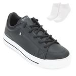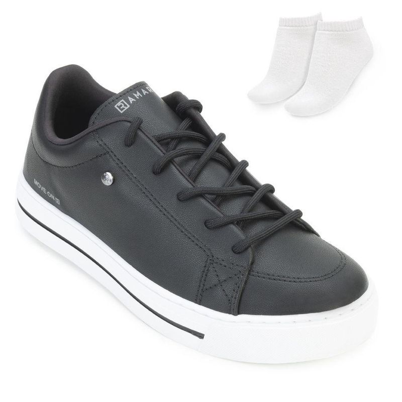 Nome: Tênis Casual Ramarim e Meia RM23-23932. Gênero: Feminino. Indicado Para: Moda-Dia a Dia. Ocasião: Casual. Material Externo: Alternativo. Material Interno: Têxtil. Fechamento: Cadarço. Detalhe: Pin metalizado da marca na lateral externa. Palmilha: EVA forrada e macia. Solado: Borracha antiderrapante. Altura do Salto: 3 cm. Peso do Produto: 910 g (o peso varia de acordo com a numeração). Garantia do Fabricante: Contra defeito de fabricação. Origem: Nacional. Código Produto: 02024645. Marca: Ramarim. Acompanha um par de meias tamanho 33 ao 38. Composição: 83 % Algodão. 12 % Poliéster. 05 % Elastodieno.