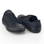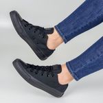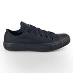*ATENÇÃO: A CONVERSE ALL STAR TEM A FORMA GRANDE, SUGERIMOS UM NÚMERO MENOR COMPARADO A OUTRAS MARCAS. O modelo de tênis mais tradicional e estiloso da Converse All Star confeccionado em lona, vem agora monocromático para quem gosta de preto total. Ilhoses do cadarço em preto. A logo da marca está na língua e na parte de trás do solado. Forro em lona preta e palmilha com espuma e EVA. Altura aproximada do solado 3 cm Cabedal em tecido tipo lona Solado emborrachado A quantidade de ilhoses pode variar de acordo com o tamanho do tênis. Garantia: Produto original Converse All Star com garantia de fábrica contra defeitos de fabricação.