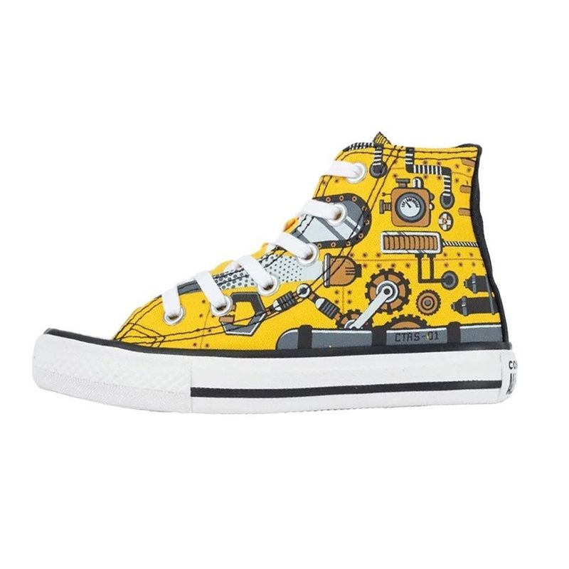Descrição:Coloque muito estilo e diversão no dia a dia da criançada com o Tênis All Star Chuck Taylor Hi Underwater Exploration. Seu cabedal é confeccionado em lona de algodão, garantindo conforto e durabilidade. De cano alto, ele possui amarração por cadarço, proporcionando um ajuste personalizado aos pés dos pequenos. Os ilhoses prata adicionam um toque de estilo ao calçado e aumenta a ventilação dos pés. Uma característica única deste modelo é o zíper na lateral, que facilita o calce e confere um visual moderno. A palmilha em PU oferece conforto e maciez a cada passo. O solado é feito de borracha resistente, entregando aderência e durabilidade em diferentes superfícies. Além disso, o modelo se destaca pelo seu design com estampa com ilustrações que se referem à parte interna de um submarino. O logo Converse Chuck Taylor All Star é aplicado na parte interna dos canos, agregando autenticidade ao calçado. Seja para brincar, passear ou se divertir, o TÊNIS ALL STAR CHUCK TAYLOR KIDS é a escolha perfeita para levar estilo ao seu visual em todas as ocasiões. Referência: CK10560001. Forma: Grande (Sugerimos comprar um número MENOR)