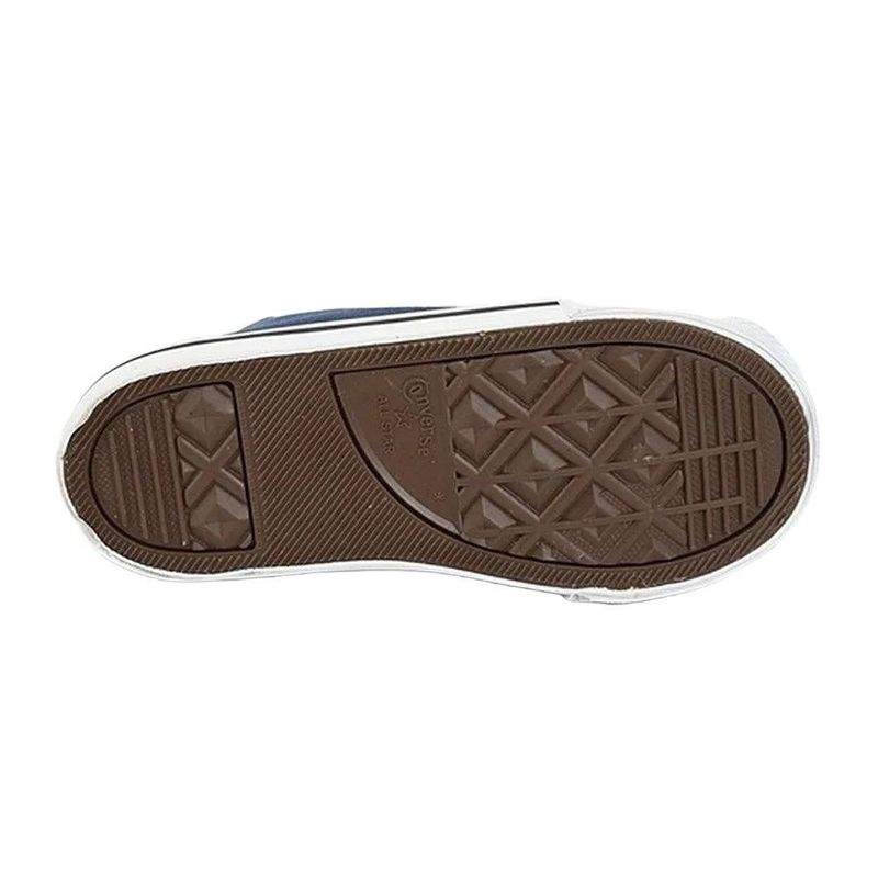 Descrição:Com o Tênis Converse All Star Chuck Taylor Kids HI os pequenos terão mais estilo onde forem. Possui cabedal produzido em material têxtil, proporcionando leveza e conforto. O fechamento é feito por cadarço, para melhor regulagem. A palmilha removível auxilia na higienização. Seu solado de borracha oferece mais aderência às superfícies, tornando as brincadeiras mais seguras. Conta com cano alto que assegura firmeza e ótimo ajuste. Com design clássico na cor marinho, contém também detalhes nas cores branca e preta. Referência: CK0003000. Forma: Grande (Sugerimos comprar um número MENOR).