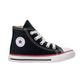 Descrição:Com o Tênis Converse All Star Chuck Taylor Kids HI os pequenos terão mais estilo onde forem. Possui cabedal produzido em material têxtil, proporcionando leveza e conforto. O fechamento é feito por cadarço, para melhor regulagem. A palmilha removível auxilia na higienização. Seu solado de borracha oferece mais aderência às superfícies, tornando as brincadeiras mais seguras.Conta com cano alto que assegura firmeza e ótimo ajuste. Com design clássico em preto, contém também detalhes nas cores vermelho e branco. Referência: CK00030007. Forma: Grande (Sugerimos comprar um número MENOR).