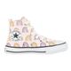 Descrição:Leve um estilo mais divertido ao visual da criançada com o Tênis All Star Chuck Taylor Hi Rainbows Infantil. Seu cabedal é confeccionado em lona de algodão, garantindo conforto e durabilidade. De cano alto, ele possui amarração por cadarço, proporcionando um ajuste personalizado aos pés dos pequenos. Os ilhoses prata adicionam um toque de estilo ao calçado e aumenta a ventilação dos pés. Uma característica única deste modelo é o zíper na lateral, que facilita o calce e confere um visual moderno. A palmilha em PU oferece conforto e maciez a cada passo. O solado é feito de borracha resistente, entregando aderência e durabilidade em diferentes superfícies. Além disso, o modelo se destaca pelo seu design com estampa de arco-íris. O logo Converse Chuck Taylor All Star é aplicado na parte interna dos canos, agregando autenticidade ao calçado. Seja para brincar, passear ou se divertir, o Tênis All Star Chuck Taylor Hi Rainbows é a escolha perfeita para levar estilo ao seu visual em todas as ocasiões. Referência: CK10810001. Forma: Grande (Sugerimos comprar um número MENOR).