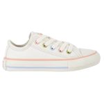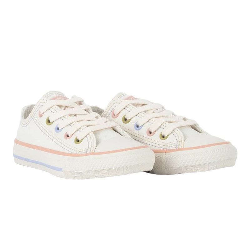 Descrição:O tênis Converse All Star Chuck Taylor Vintage OX infantil é o calçado perfeito para os pequenos que gostam de estilo casual e conforto. Sua composição de cabedal em tecido tipo lona confere um toque de leveza e durabilidade ao calçado, permitindo a ventilação adequada para os pés, mesmo em dias mais quentes. A entressola liga-se ao solado em peça única, proporcionando uma estrutura sólida e estável ao tênis, garantindo assim maior conforto e suporte durante o uso diário. O solado completamente fabricado em borracha oferece excelente aderência em diferentes tipos de superfícies, tornando-o uma escolha confiável para todas as suas atividades cotidianas. O fechamento por cadarços permite um ajuste personalizado, adaptando-se perfeitamente ao formato dos pés, entregando segurança e firmeza ao caminhar. Além disso, as palmilhas removíveis oferecem a possibilidade de substituição por outras palmilhas ortopédicas ou personalizadas, conforme a necessidade individual. O tênis é indicado para uso casual, sendo ideal para diversas ocasiões do dia a dia, como passeios, encontros com amigos, idas ao shopping, entre outros eventos descontraídos. Seu design versátil e divertido, permite combinações diversas com diferentes peças de roupa, desde jeans e shorts até vestidos e saias. Referência: CK11010001. Forma: Grande (Sugerimos comprar um número MENOR).