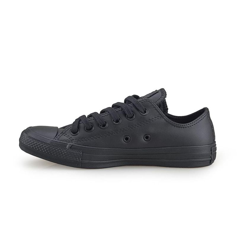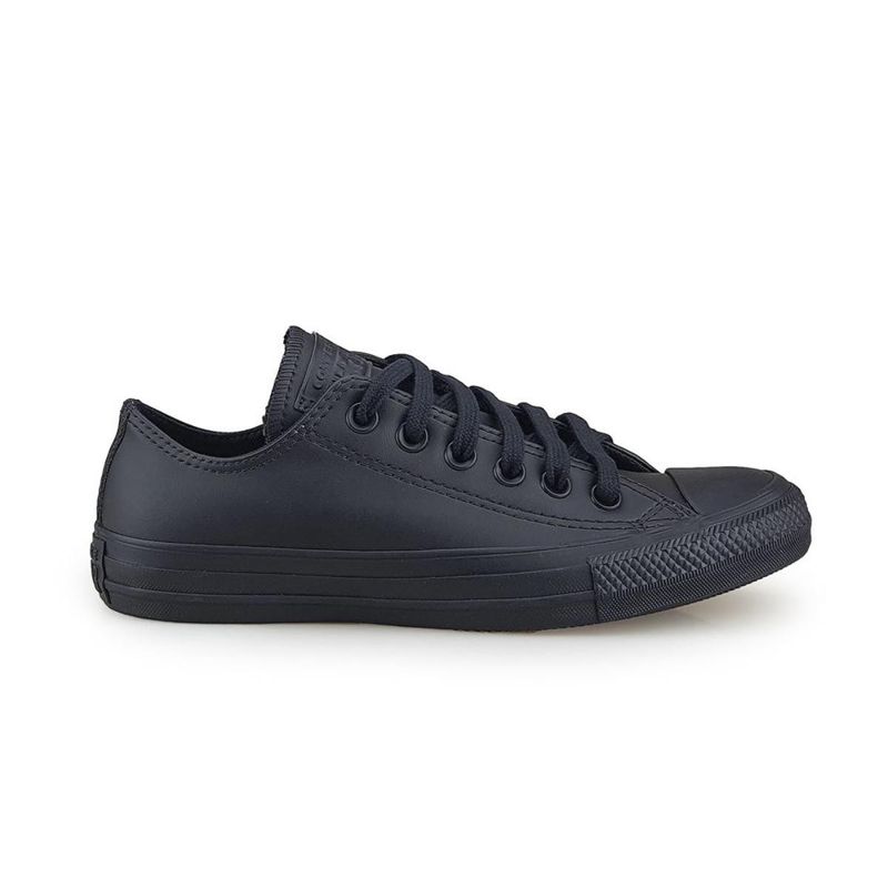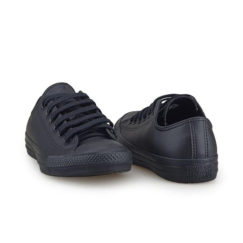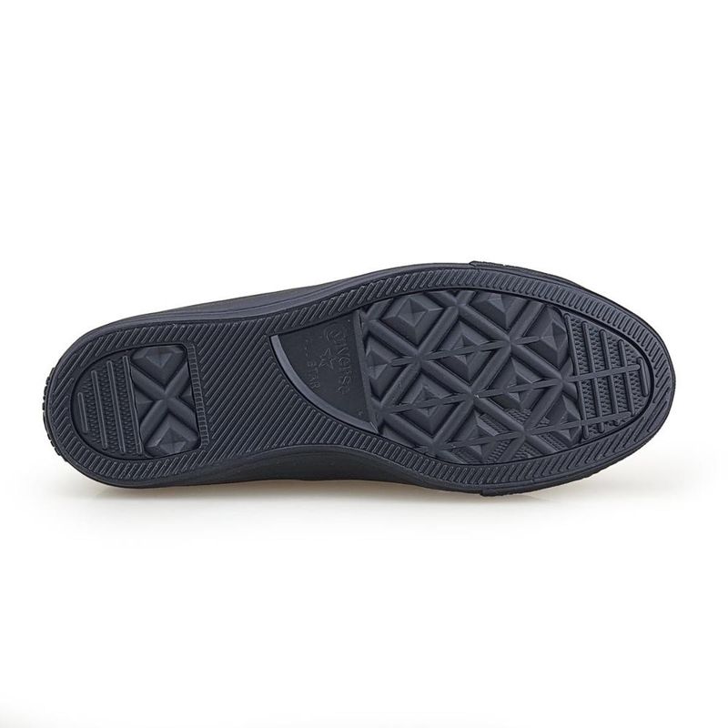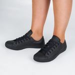 *ATENÇÃO: A CONVERSE ALL STAR TEM A FORMA GRANDE, SUGERIMOS UM NÚMERO MENOR COMPARADO A OUTRAS MARCAS. O modelo de tênis mais tradicional e estiloso da Converse All Star confeccionado em napa, vem agora monocromático para quem gosta de preto total. Ilhoses do cadarço em preto. A logo da marca está na língua e na parte de trás do solado. Forro em lona preta e palmilha com espuma e EVA. Altura aproximada do solado 3 cm Cabedal em napa sintética Solado emborrachado A quantidade de ilhoses pode variar de acordo com o tamanho do tênis. Garantia: Produto original Converse All Star com garantia de fábrica contra defeitos de fabricação.
