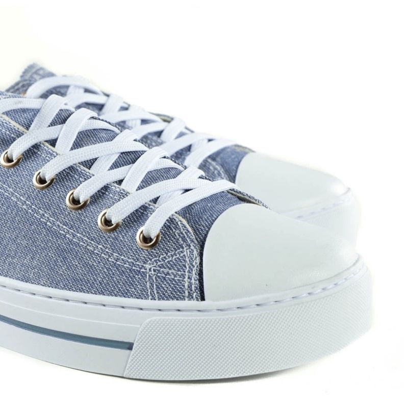 Um amor chamado tênis. Vai bem com produções casuais ou descoladas, simples ou sofisticadas, em qualquer ocasião. Definitivamente, não há nada mais versátil que um tênis como esse. Cor: Azul Jeans, Branco Material: Sintético Altura do Salto: 4 cm Tipo de Salto: Médio Tipo de Bico: Bico Arredondado Medidas: Tamanho 33: Circunferência 22,20cm - Comprimento 22,168cm - Largura 7,66cm Tamanho 34: Circunferência 22,25cm - Comprimento 22,834cm - Largura 7,83cm Tamanho 35: Circunferência 22,30cm - Comprimento 23,500cm - Largura 8,00cm Tamanho 36: Circunferência 22,35cm - Comprimento 24,166cm - Largura 8,17cm Tamanho 37: Circunferência 22,40cm - Comprimento 24,832cm - Largura 8,34cm Tamanho 38: Circunferência 22,45cm - Comprimento 25,498cm - Largura 8,51cm Tamanho 39: Circunferência 22,50cm - Comprimento 26,164cm - Largura 8,68cm Tamanho 40: Circunferência 22,55cm - Comprimento 26,830cm - Largura 8,85cm Tamanho 41: Circunferência 22,60cm - Comprimento 27,496cm - Largura 9,02cm Tamanho 42: Circunferência 22,65cm - Comprimento 28,162cm - Largura 9,19cm