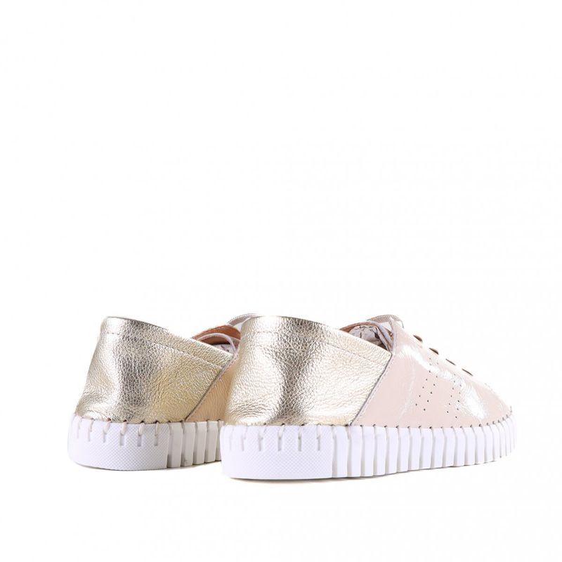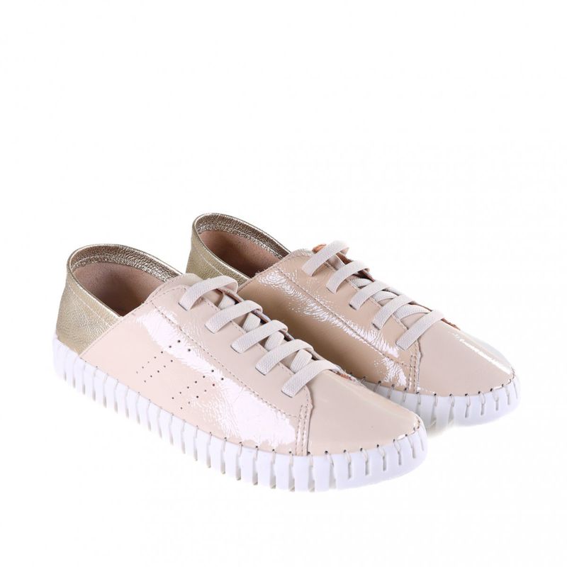 Referência: 3040 Material Externo: Couro Material Interno: Couro Solado: Borracha Fechamento: Cadarço Elástico Detalhes: Pespontos / Verniz / Metalizado / Respiros Salto: 2,5cm (Aprox.) Tênis Feminino Zariff Características Principais: Material: Externo: Couro, oferecendo durabilidade e um acabamento sofisticado. Interno: Couro, garantindo conforto e uma sensação agradável ao pé. Design: Detalhes: Metalizado: Elementos metalizados que adicionam um toque moderno e elegante ao visual. Vernizado: Acabamento vernizado que confere brilho e sofisticação ao tênis. Fechamento: Cadarço elástico, proporcionando um ajuste seguro e facilitando o calce e descalce do calçado. Conforto e Praticidade: Conforto: Material interno em couro que assegura uma sensação macia e confortável para uso prolongado. Praticidade: Fechamento com cadarço elástico que permite um ajuste fácil e rápido, além de proporcionar um visual limpo e moderno. O tênis feminino Zariff combina a durabilidade e a elegância do couro com detalhes metalizados e vernizados, além de um prático fechamento de cadarço elástico, resultando em um calçado que é ao mesmo tempo estiloso, confortável e fácil de usar. Tênis Feminino Zariff, Tênis Feminino Confortável, Tênis Feminino Dia A Dia, Tênis Feminino Casual, Tênis Feminino, Tendência, Coleção 2024.