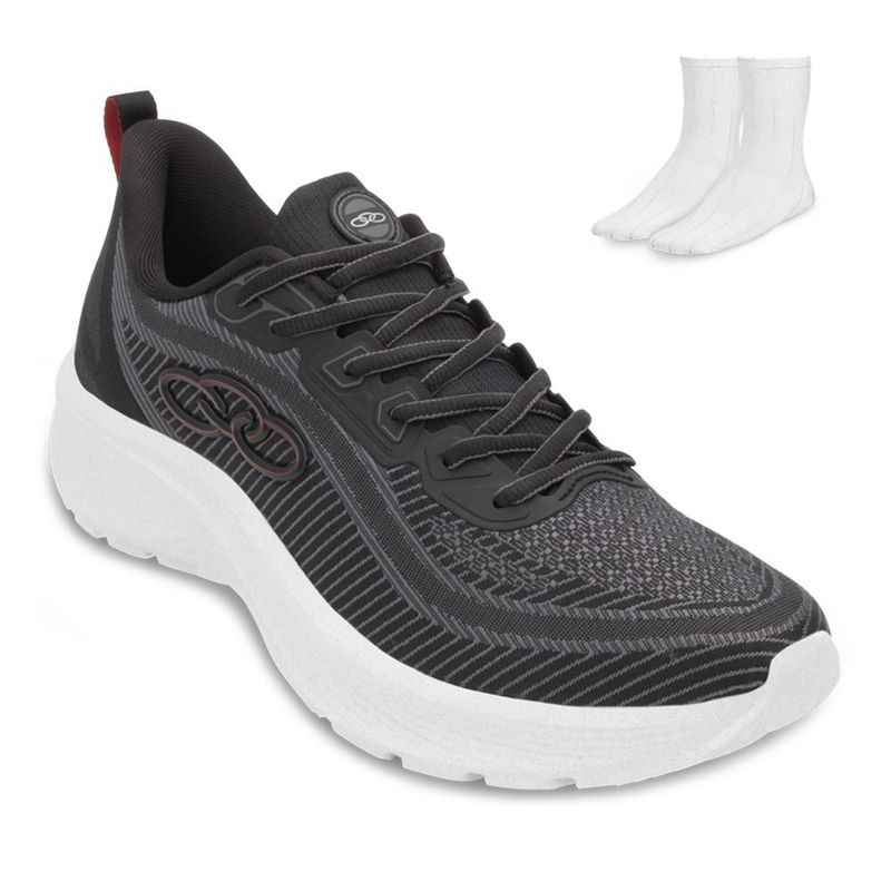O Olympikus Conex é um tênis que traz um visual de movimento, combinando resistência e versatilidade. Possui solado com tecnologia de amortecimento Evasense, que proporciona leveza, maciez e flexibilidade nas passadas. Seu cabedal é confeccionado em tecido jacquard com arte gráfica com linhas orgânicas. Conta ainda com detalhes em laminado que levam a tecnologia High Frequency. A lingueta surge em confortável combinação de tecido dupla frontura. Seu atacador é composto por tecido texturizado e o forro macio. Além disso, conta com palmilha anatômica composta por EVA forrada, com aplicação gráfica.