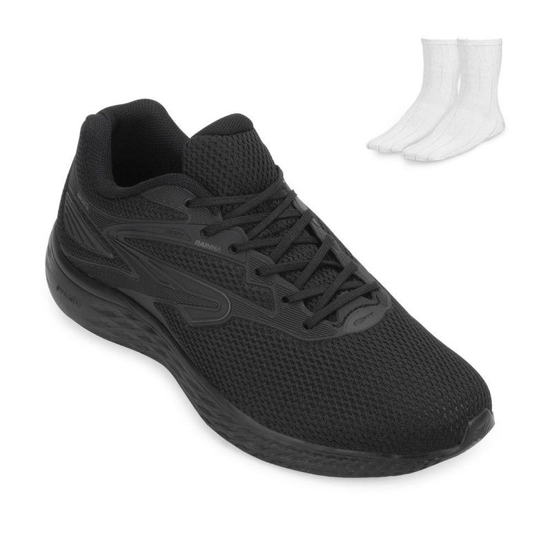 Nome: Tênis Rainha Drive III e Meia RA23. Gênero: Masculino. Indicado Para: Dia a Dia - Caminhada. Ocasião: Casual. Material Externo: Têxtil. Material Interno: Têxtil. Fechamento: Cadarço. Palmilha: EVA forrada e macia. Solado: EVA antiderrapante. Peso do Produto: 759 g. (o peso varia de acordo com a numeração). Garantia do Fabricante: Contra defeito de fabricação. Origem: Nacional. Código Produto: 01024617. Marca: Rainha. Acompanha um par de meias tamanho 37 ao 43. Composição: 83% Algodão. 12% Poliamida. 05% Elastodieno.